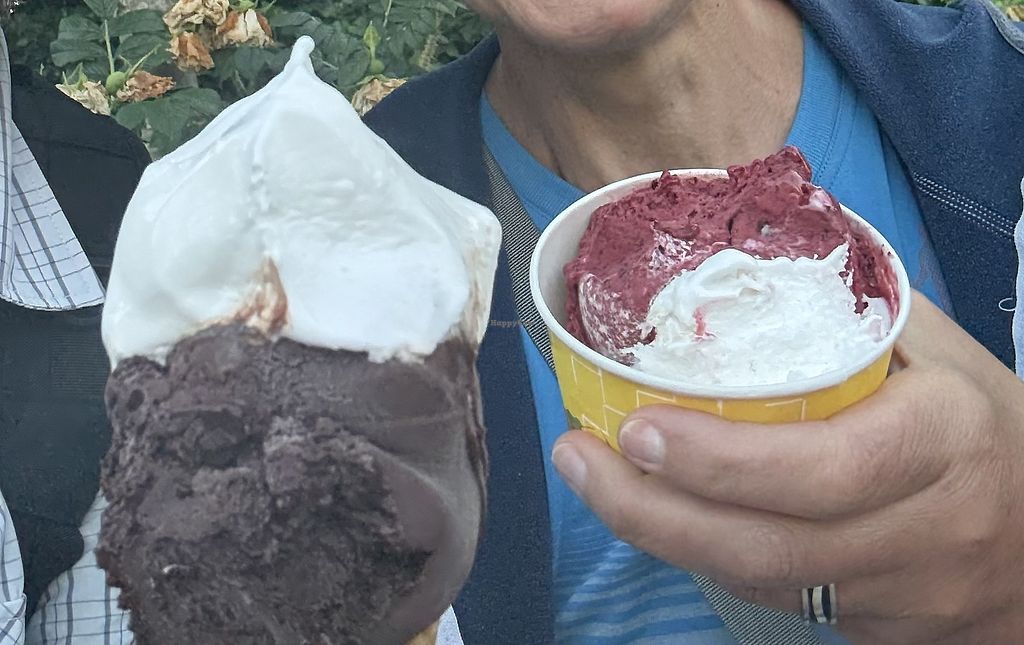 Many types of fruit, very creamy. Be sure to try Dark Chocolate (vegan). Tastes like a bar of chocolate.