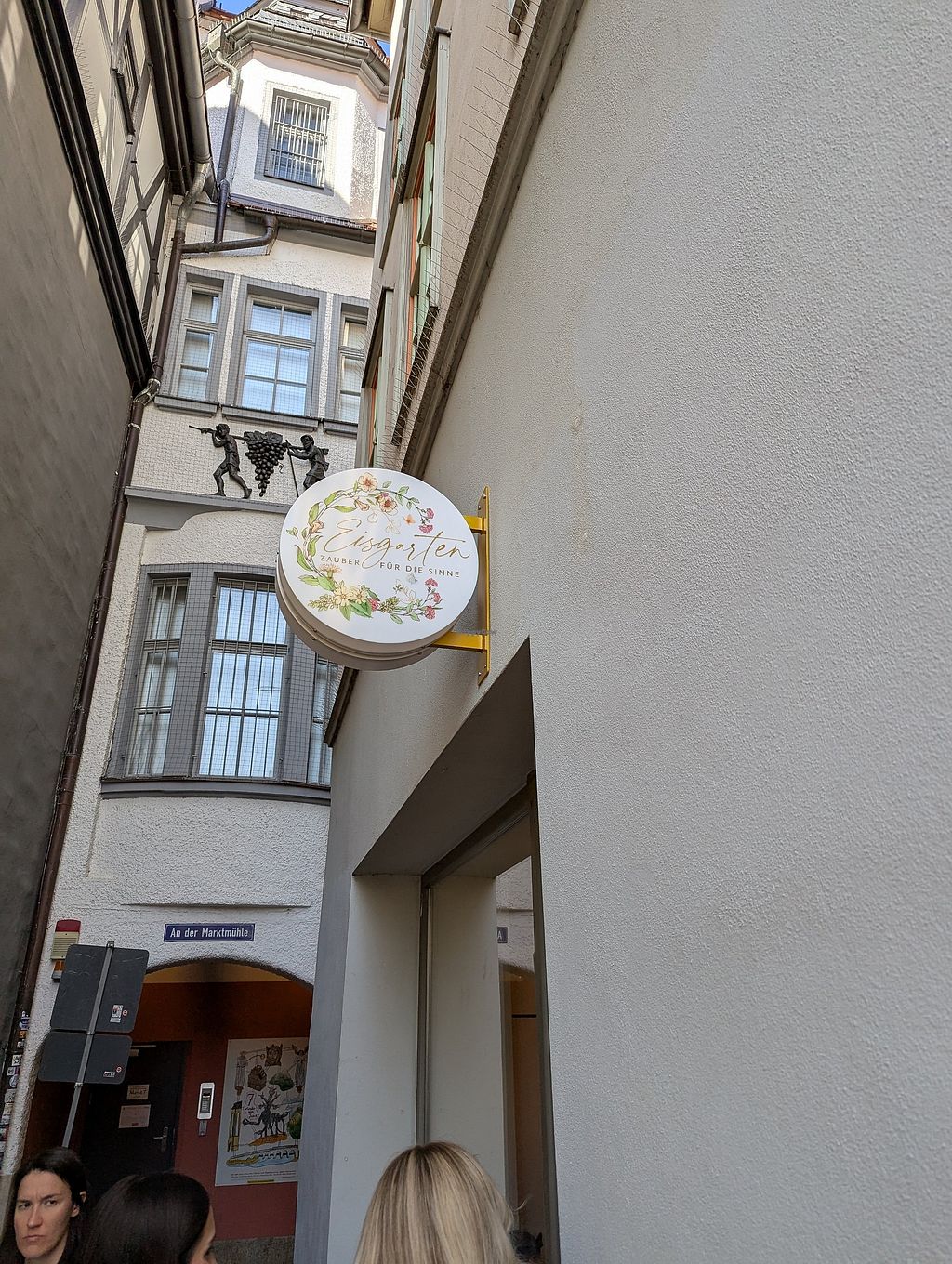 Eine Kugel Vanilleeis mit bunten Streuseln