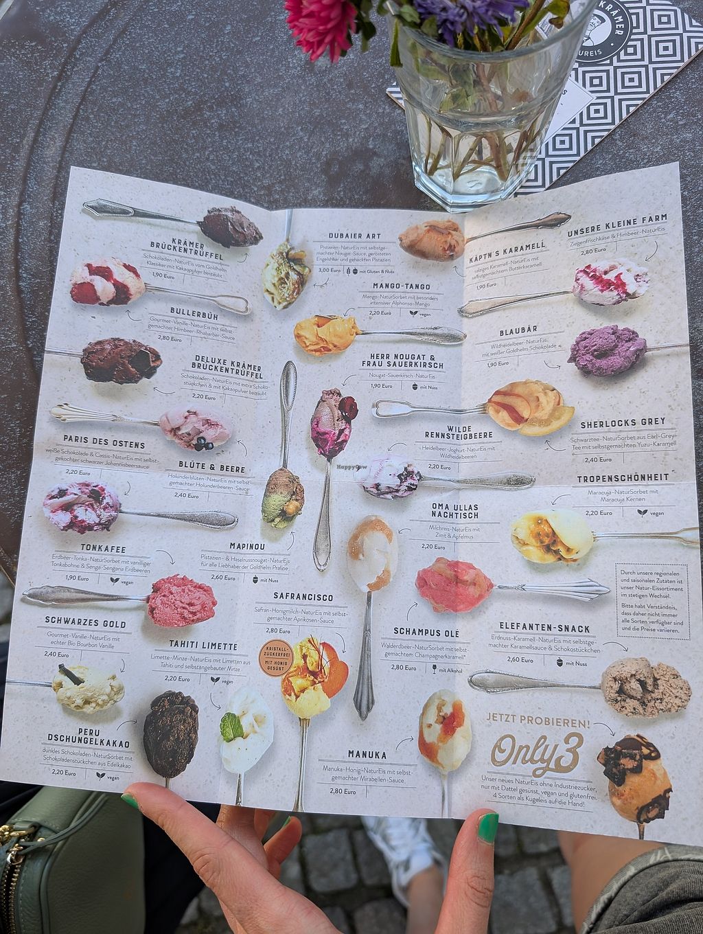 Ice cream place with unusual flavors lots of which are vegan. The cone is not vegan. There is a small park right across where you can sit down. Open Mon-Sun 12:00-18:00. More