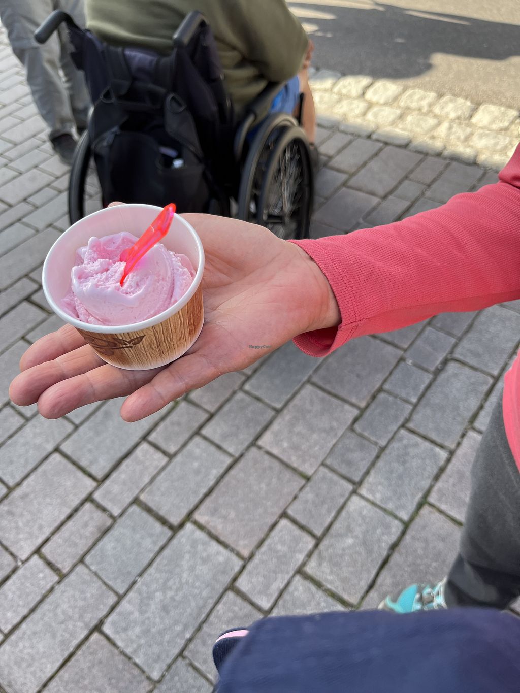 Gestern waren wir Eis bei der "Eisprinzessin" holen. Das Fruchteis wird ohne Milch zubereitet und ist somit Vegan. Sehr gut. Der Service ist freundlich und zuvorkommend.