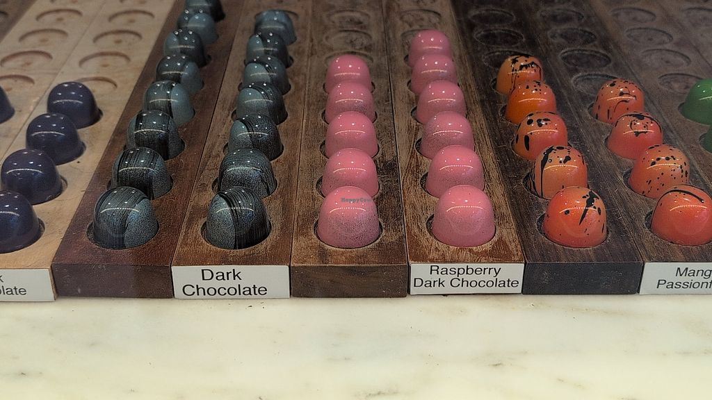 Not all vegan, but they do have a few choices available. I purchased some blueberry and rhubarb bonbons. They looked so pretty and the flavors where superb.