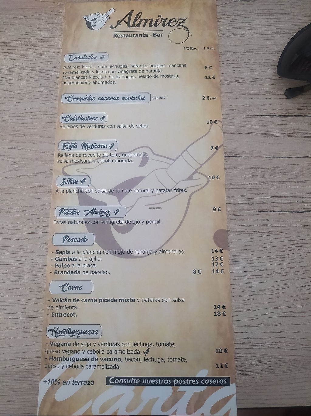 They have vegetarian and vegan options. We had Almirez salad, peppers, burguer and cheese cake. Enough for two, good prices and excellent waitress. Hope we’ll come back!!!
