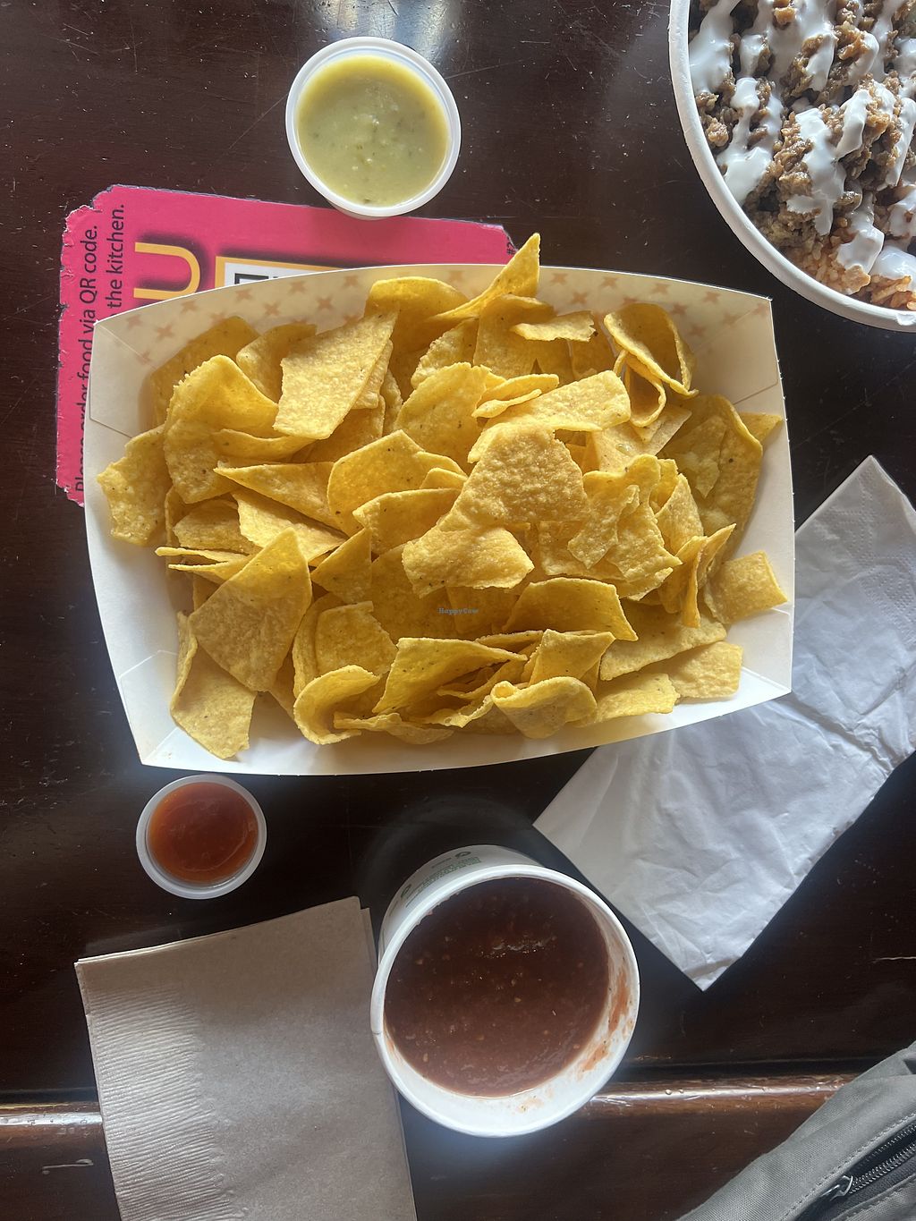 Girl how is this so highly recommended 😭 this was just okay, we got the queso/salsa with chips, the potato poblano taco, and some sort of small impossible burrito that resembled something from Taco Bell (not derogatory)