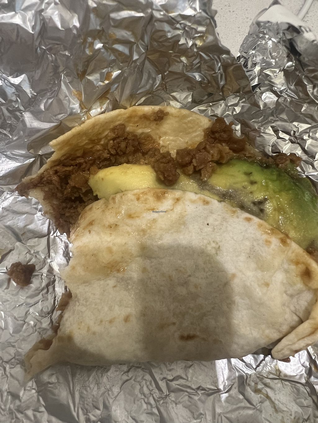 1/2 of the vegetarian crumbles burrito. Excellent. Held up well