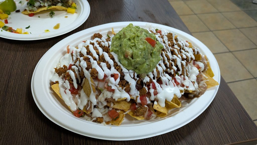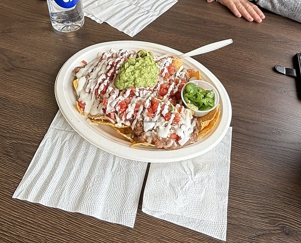 Huge selection of fully vegan Mexican food. We had the vegetable enchiladas, tacos, - kids burrito (with side of fries?), nachos, and the flan. They were out of chocolate cake. Everything was amazing. The red sauce on the enchiladas was pretty spicy but not painfully so (they also offer a mild green sauce as an option). The nachos were really good too: no fake meat but a solid cream and cheese alternative that worked well.