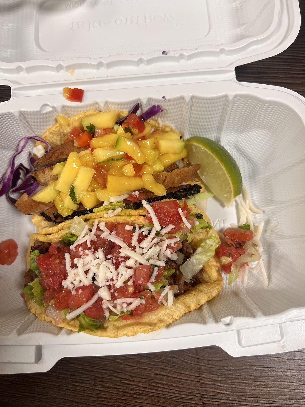 Fish tacos 2/5 not that flavorful even with the mango topping