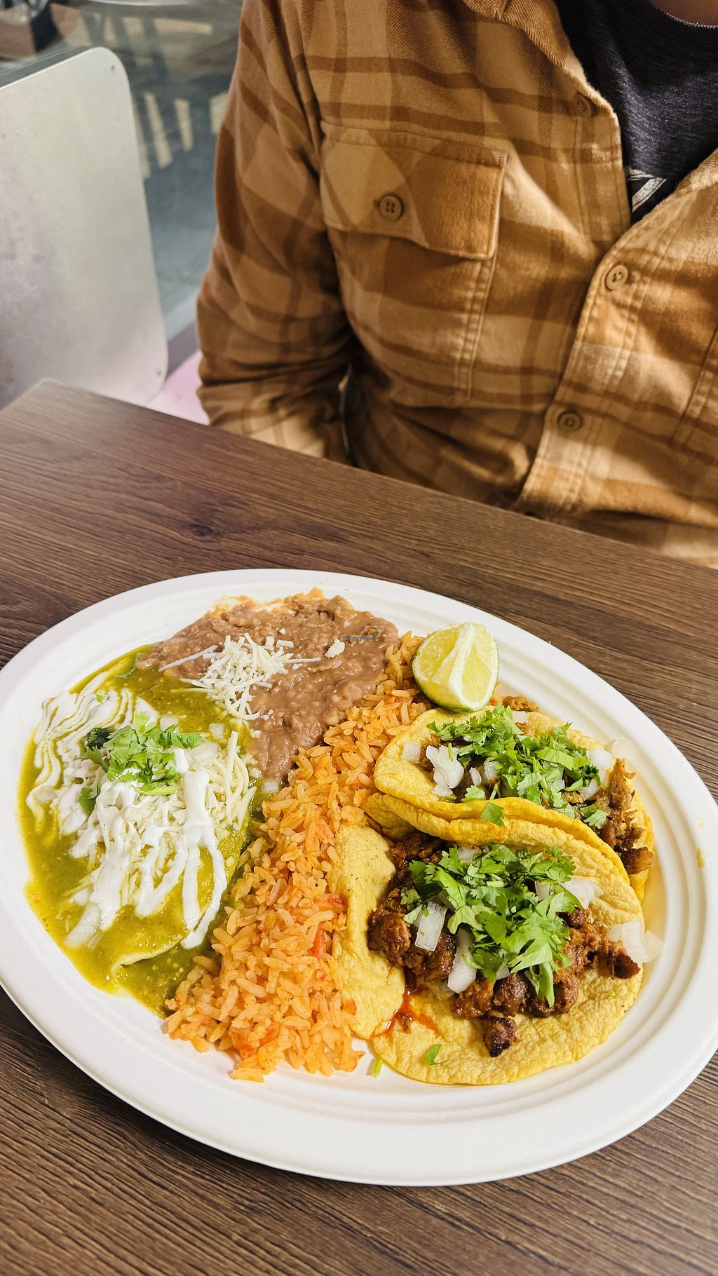 Amazing food. All the tacos were good but the ranchero and the potato are my favorite. The beans and rice were flavored great.