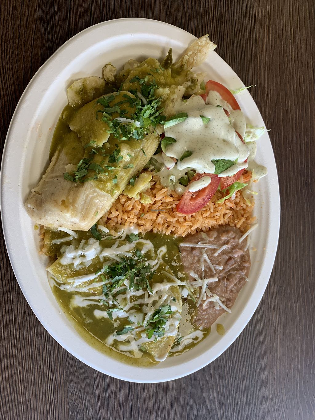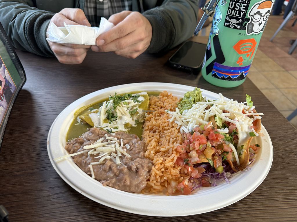 Combo plate with enchiladas verdes and crispy tacos