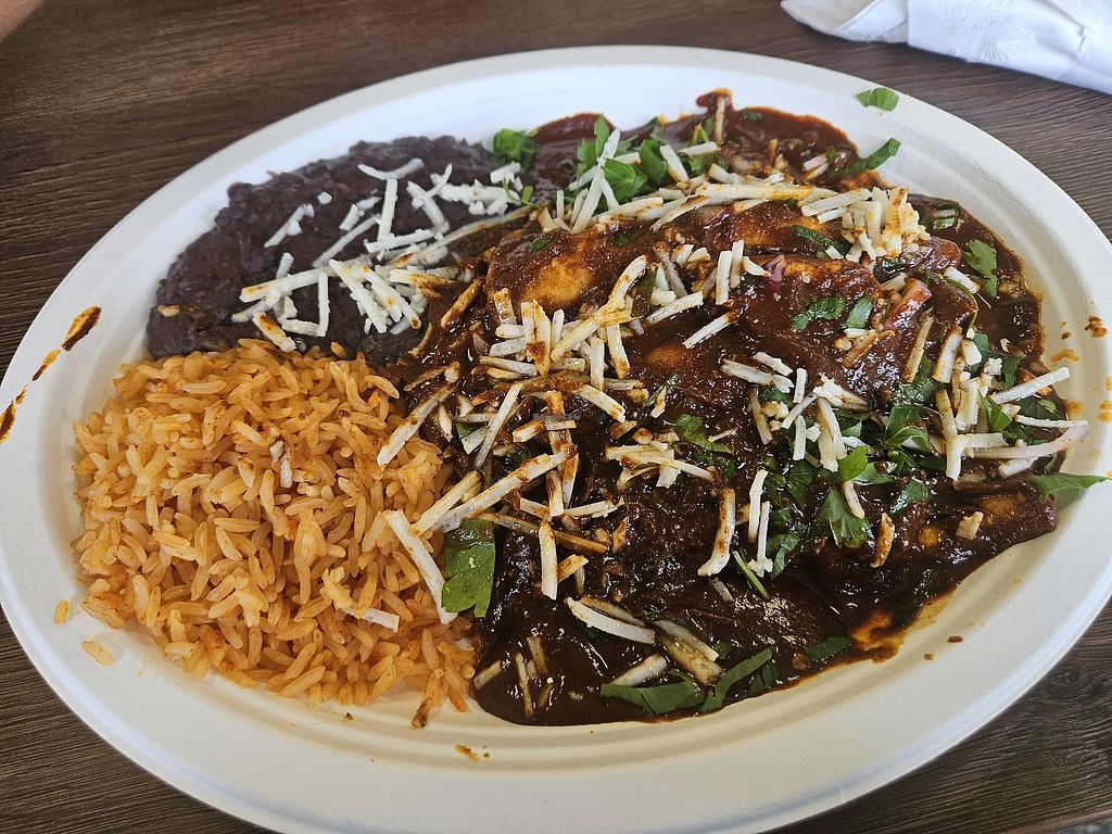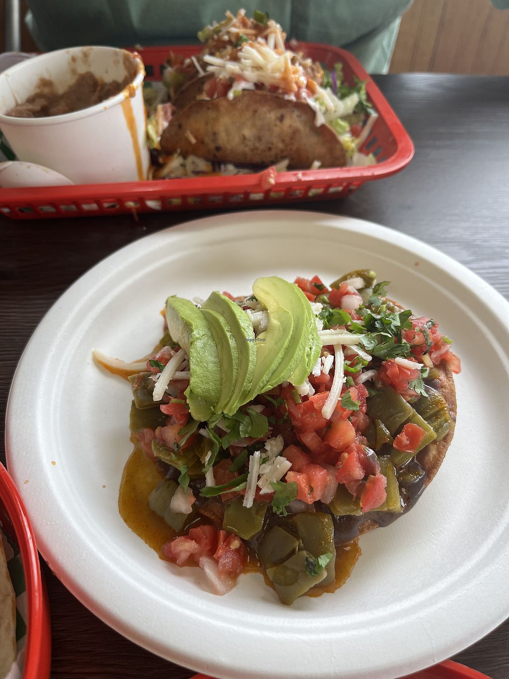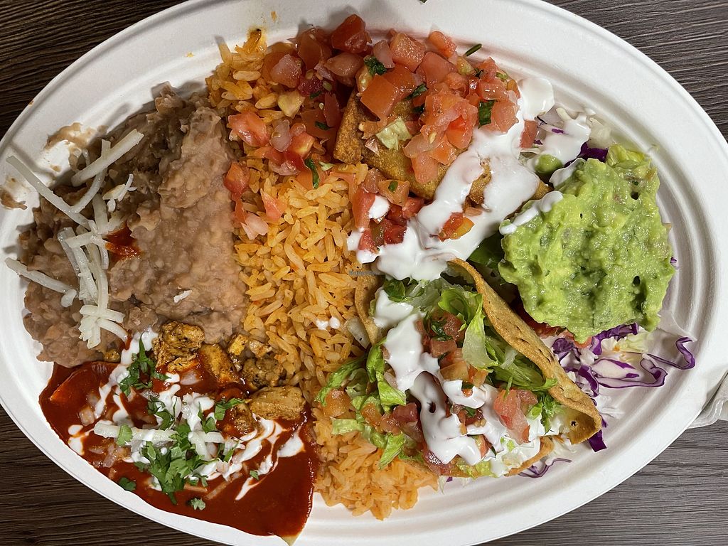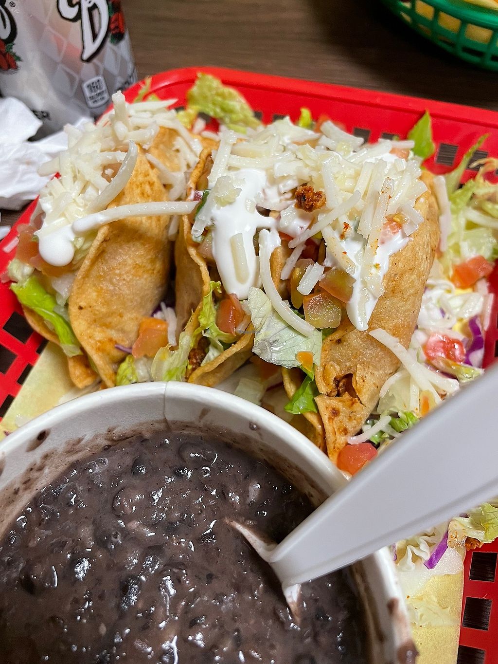 Chickn’ tacos and black beans! ‘Steak’ tostada was amazing, ate it bef…