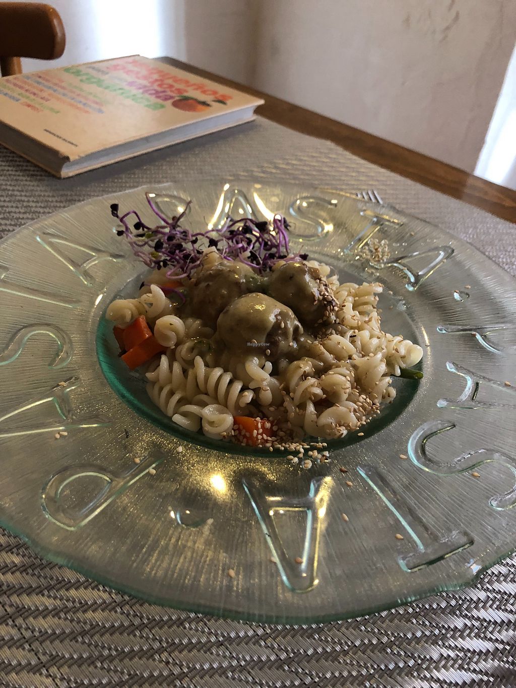 Pasta de quinoa i arròs sense gluten amb mandonguilles de seitan i esp…