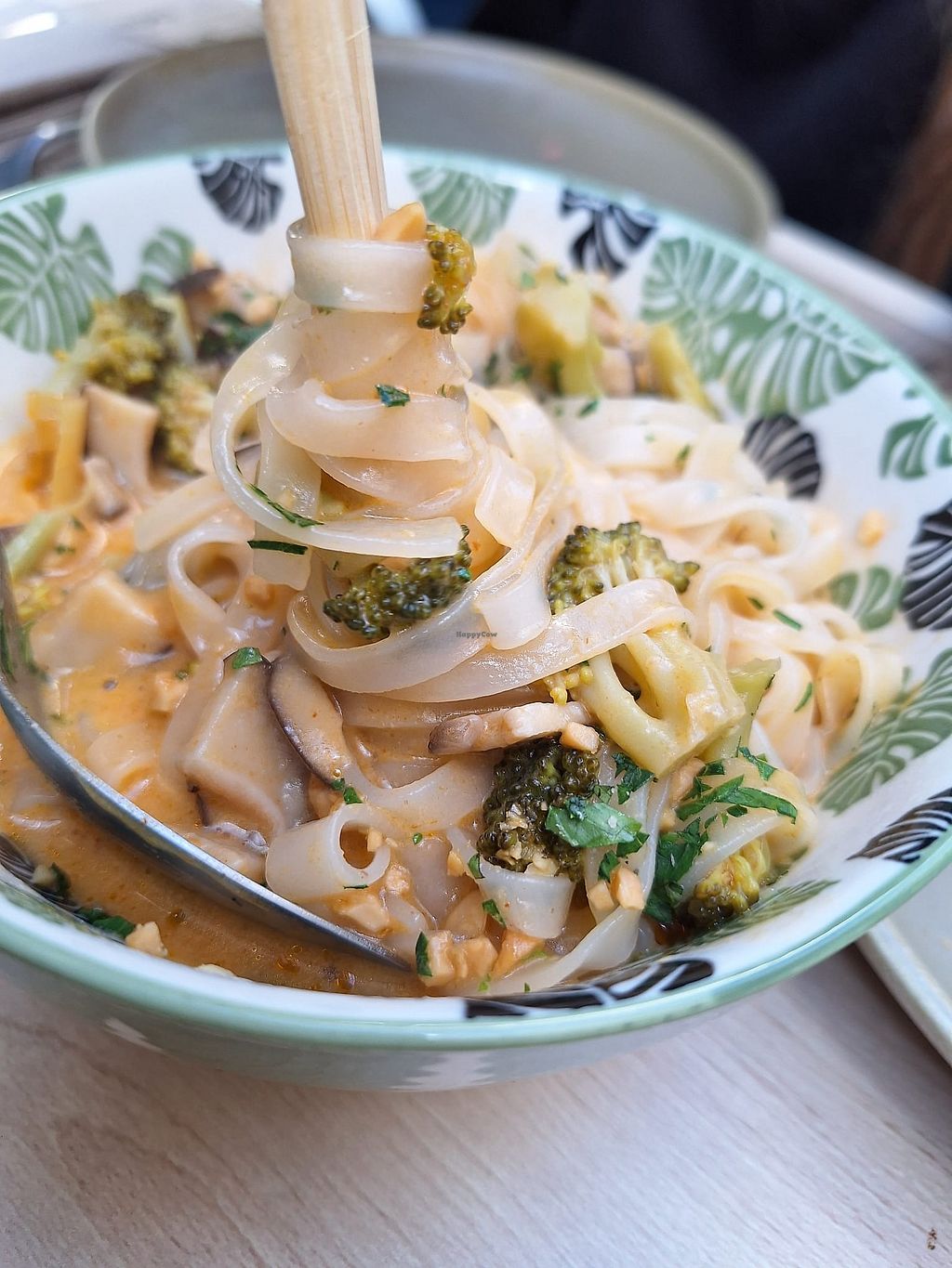 No tengo palabras!! El sitio es super cuqui, la familia que lo lleva son adorables y majísimos. Van por menú diario con distintas opciones y todas estaban exquisitas!! Lo mejor para mi gusto era carne macerada (que no recuerdo el nombre del plato) y unos gnocchi con salsa de pistacho 😍😍 También probamos la sopa thai y el estofado que también estaba increíble. Sin duda repetiría mil veces más!! Es una alegría que no solo sean hamburguesas veganas y patatas fritas, se agradece infinito❤️