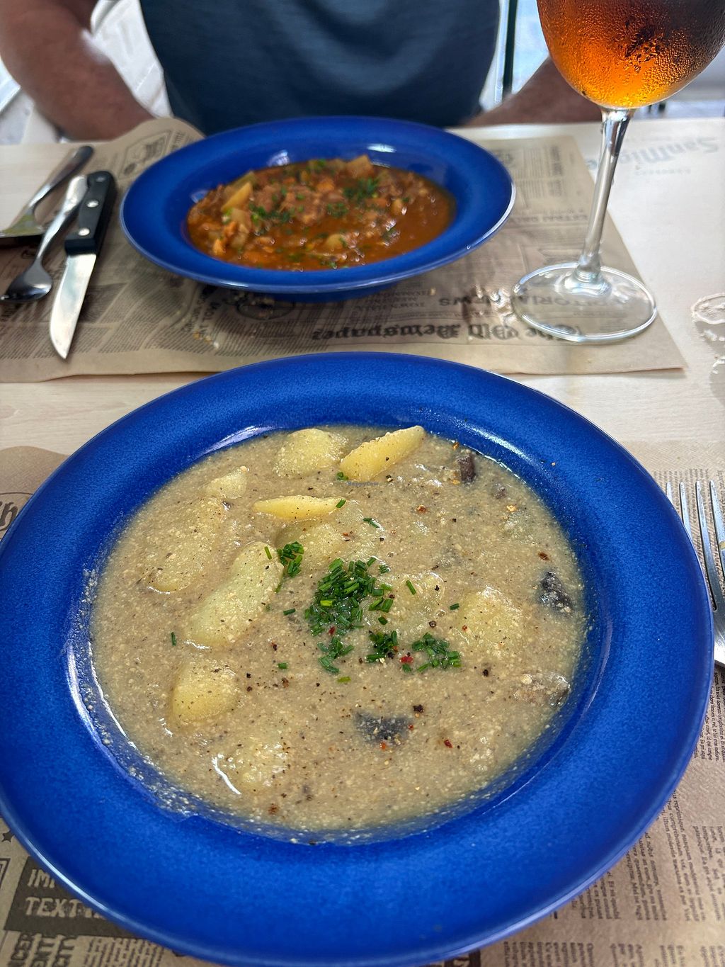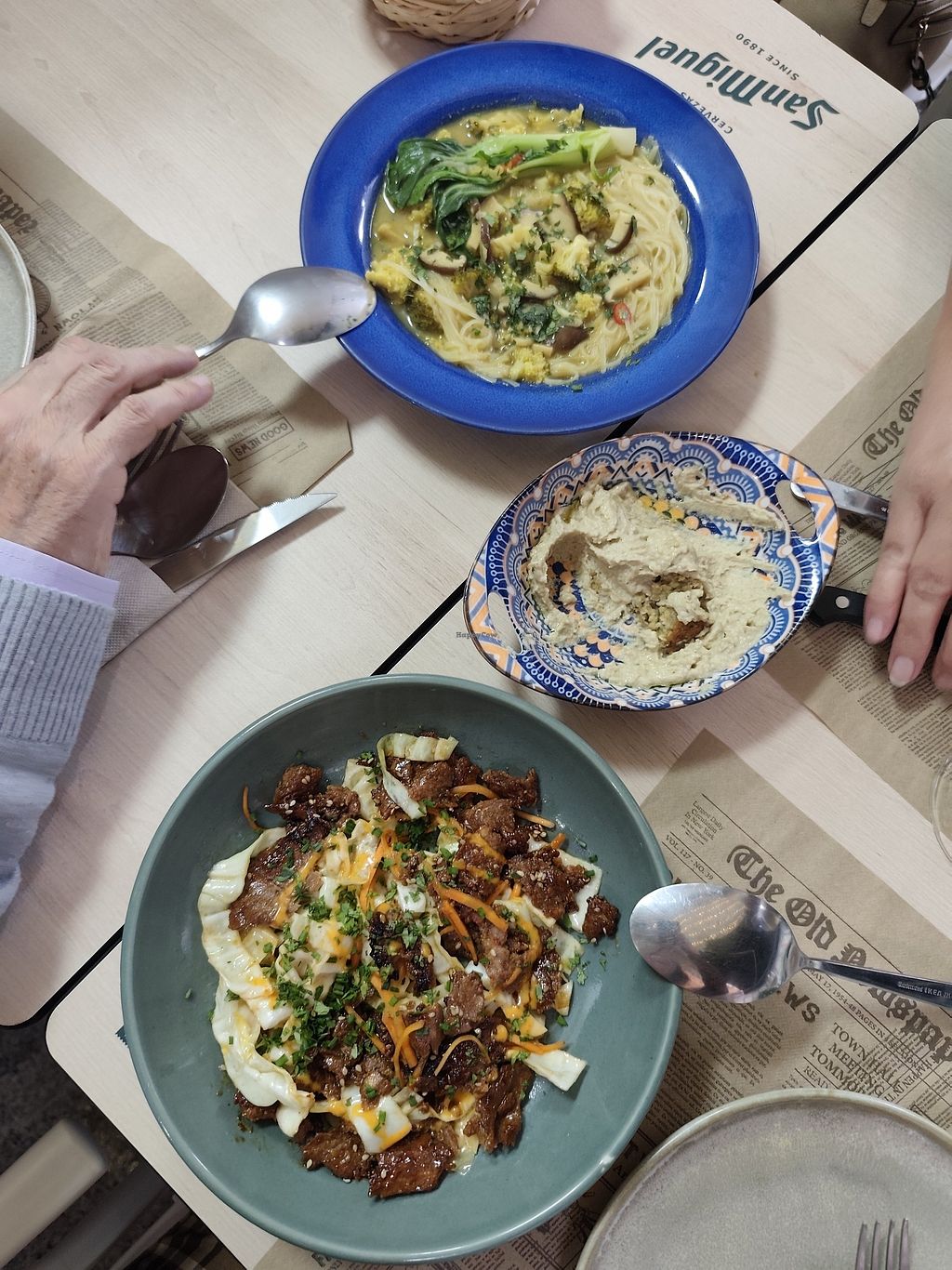 Lots of choice and very different dishes. We had a noodle dish, ravioli and kebab. They were all good. The waiter warned that the ravioli was small so we also ordered bread. And we got some lovely olives while waiting for the main course. We will be back!