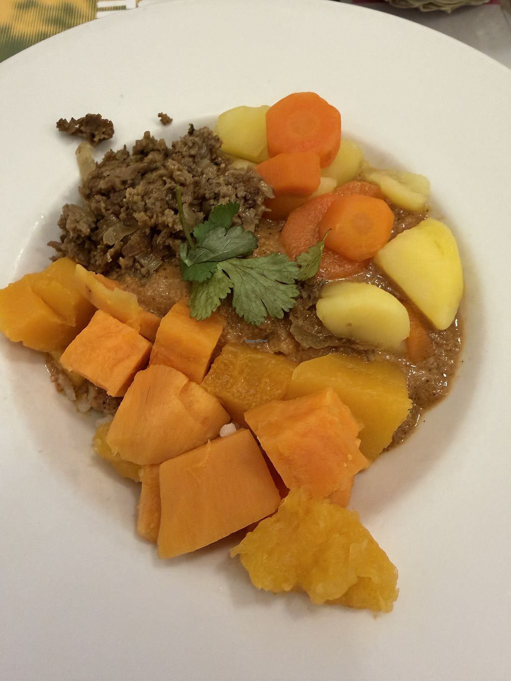 Set menu. Lots of veg which many vegan places are missing opting for meat or the like substitutes. I had the cream of leek soup and chickpeas for main. Main maybe a tad on the smaller size. Good flavours.Dessert was leche frita made from soya. A little tough. All enjoyable though. Good friendly service. Well priced.