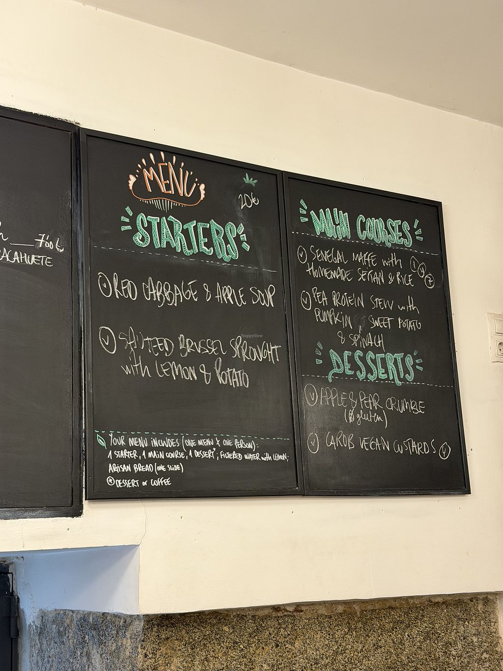 Read moreThere were three starters and three mains to choose from, all vegan, and three vegan desserts plus one not vegan. There is an English as well as the Spanish menus, explaining what's included in the menu of the day.