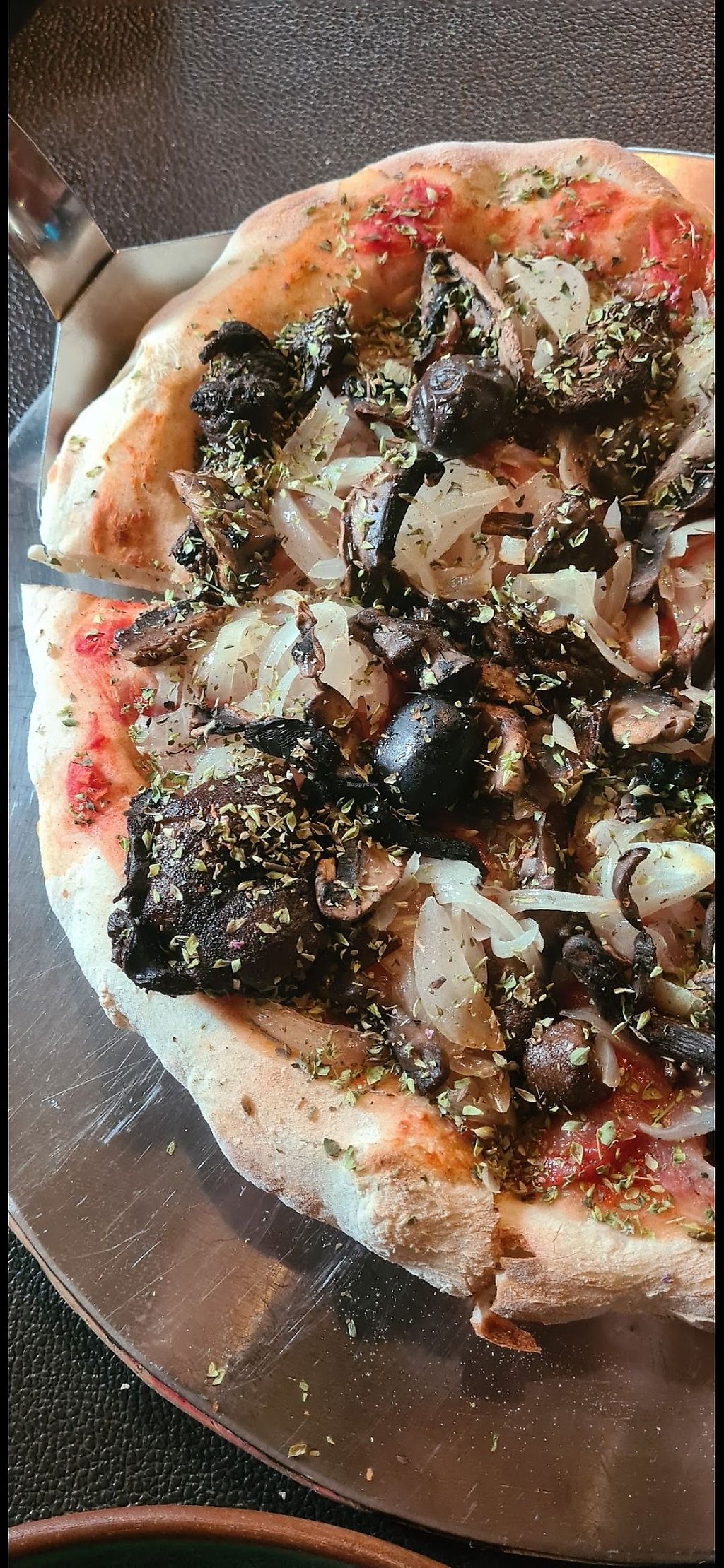 We shared the pizza (2 people), it’s quite big. I chose the vegan option for my half which was quite good. The pizza is more American than Italian style with a lot of topping. A bit heavy on the onions, if you’re not into that maybe order without them. The pine mushrooms were amazing though!