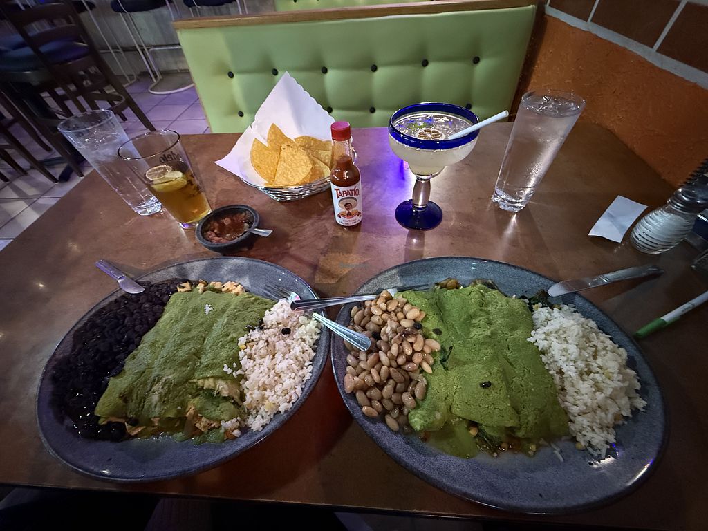 Serves meat, vegan options available. Small Mexican food place that's spacious and authentically decorated. A mariachi band plays some nights. Has a separate vegetarian menu section that includes around 9 well-rounded meals, some of which could be requested vegan. Large portions. Open Mon 10:30am-9:00pm, Tue-Thu 11:00am-9:00pm, Fri-Sat 11:00am-10:00pm, Sun 11:00am-9:00pm. Closed Mon.