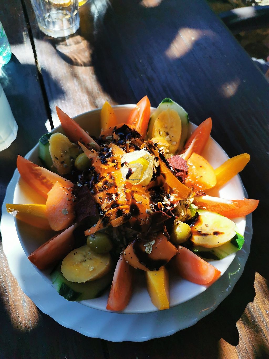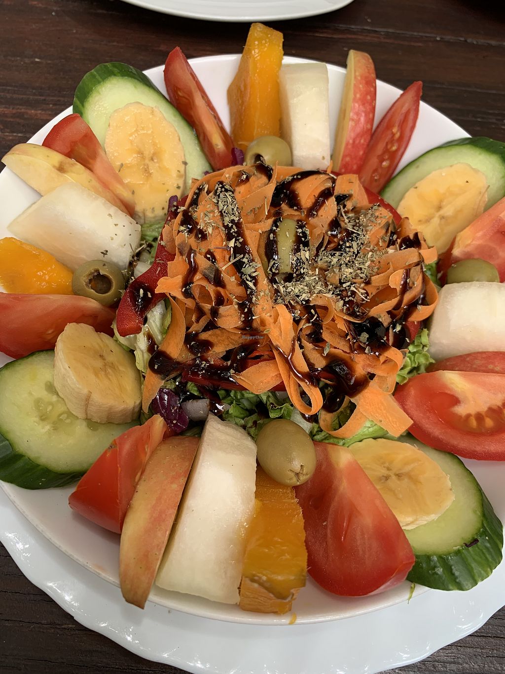 This is a very small restaurant with a spectacular view. The vibe is very cosy and just being there is a pure joy. They have a small vegetarian menu that can be adapted for vegans. Everything we ate was really good and the house wine was great too. We also bought some of their home grown avocados and they were the best we had and a great price too!