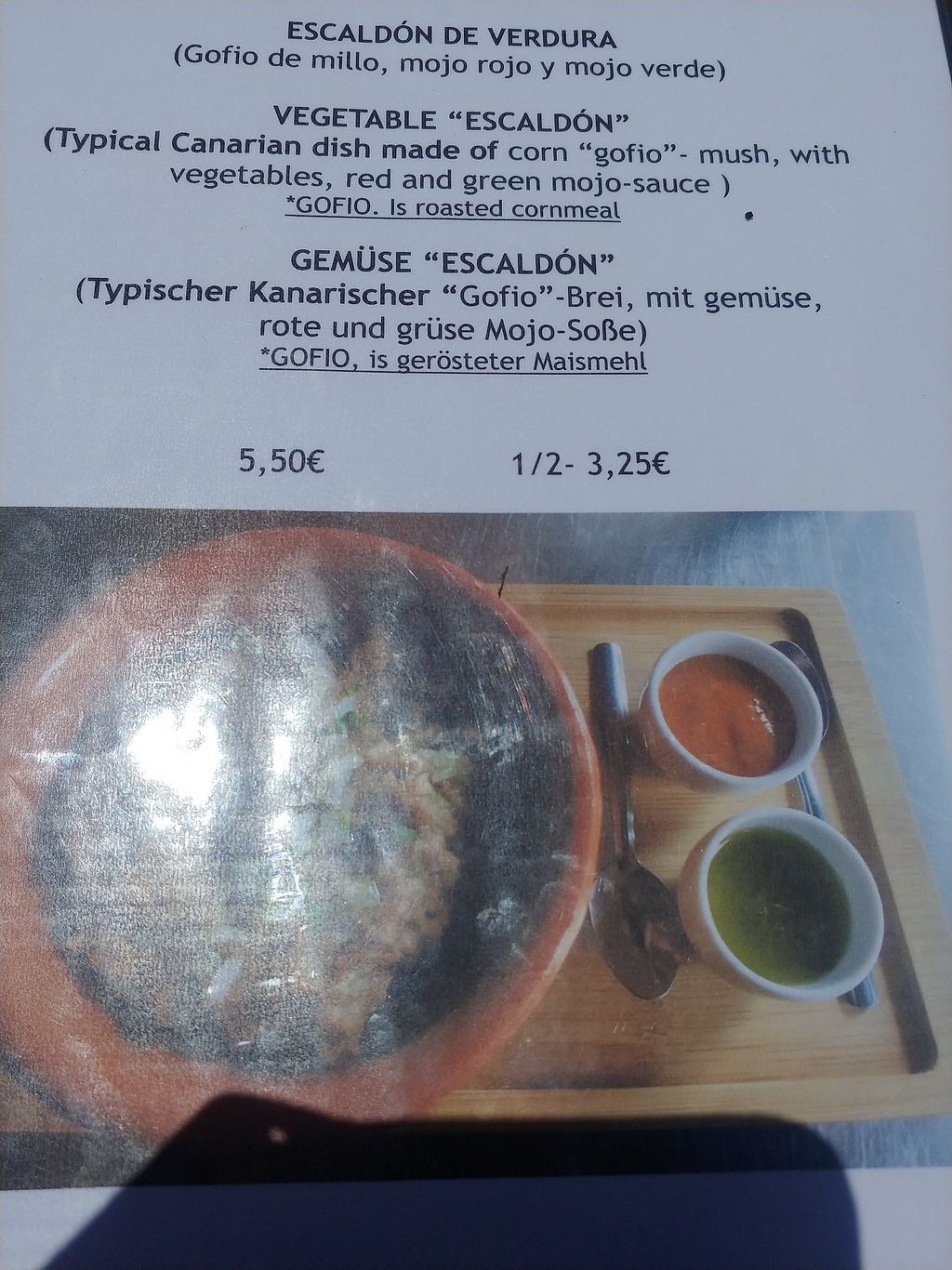 Neben Papas und lecker frischen Salat mit Obstanteil, ist der Gofio zu empfehlen. Auch die Pilze waren toll.