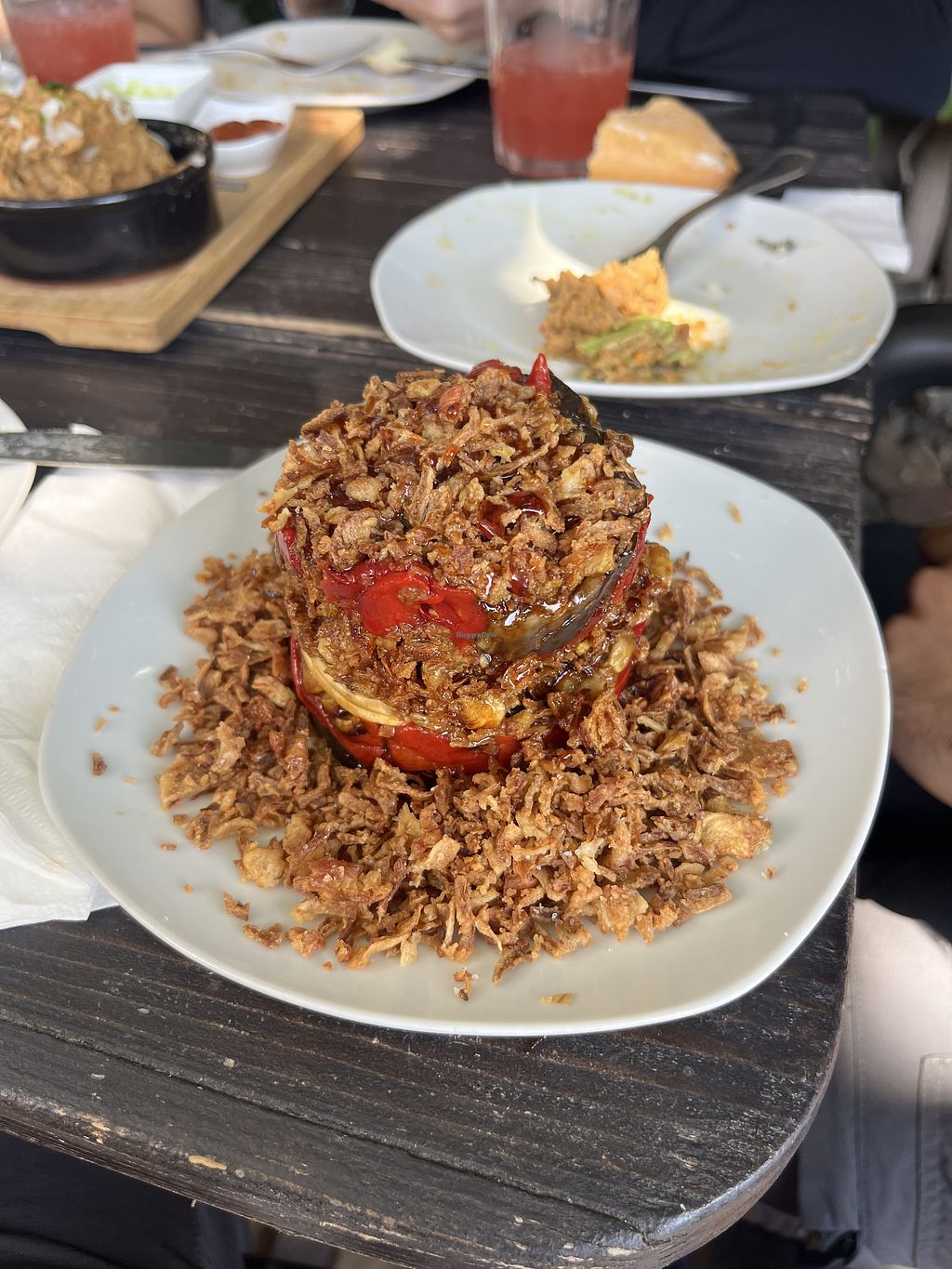 Some vegan options, was nice, there is a vegan version of a local dish. Best from what we had was the fried mushrooms. Would be nice if they expnd the vegan options.