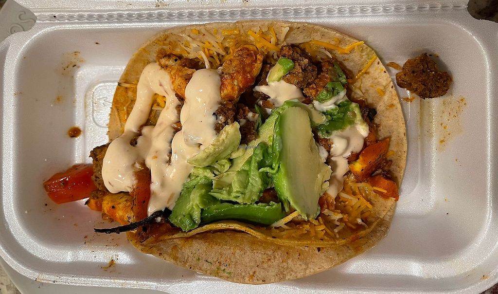 Taco Tuesday 3 of your choice tacos vegan carne asada pollo asado birria adobada seitan tempeh fishless BIG TACOS 3x9