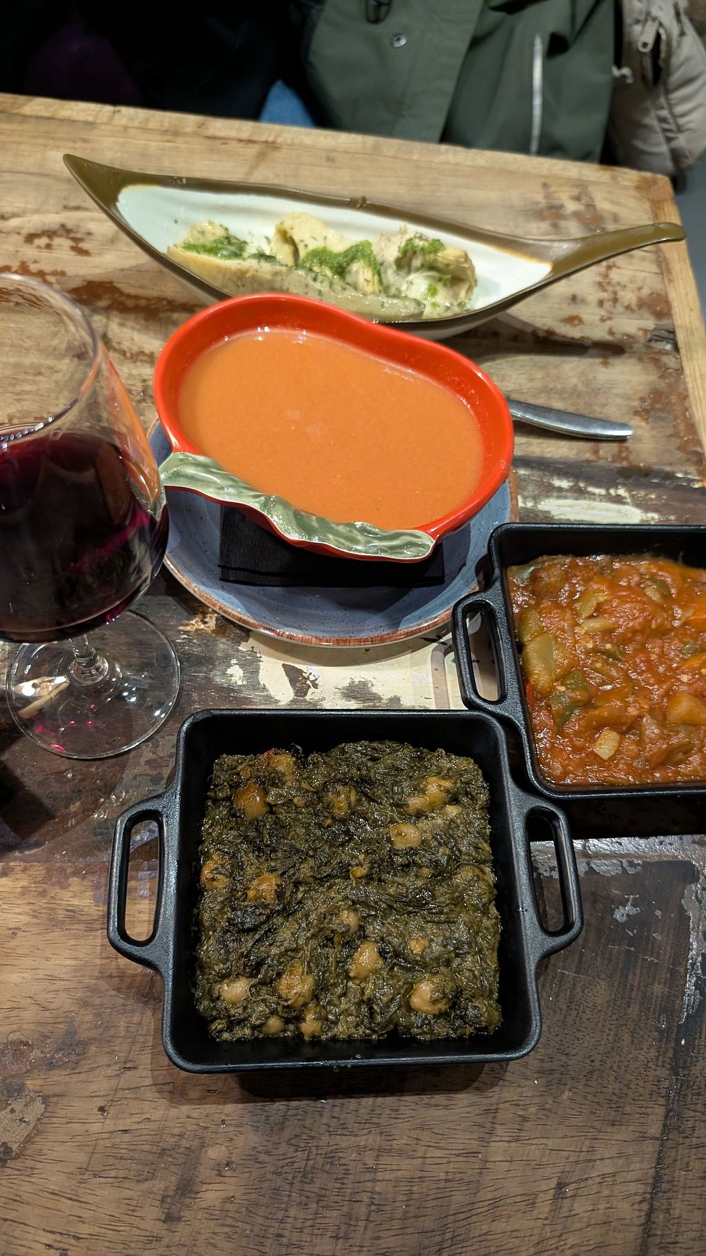 I had the spinach and chickpeas and the mushroom paella and would highly recommend both.