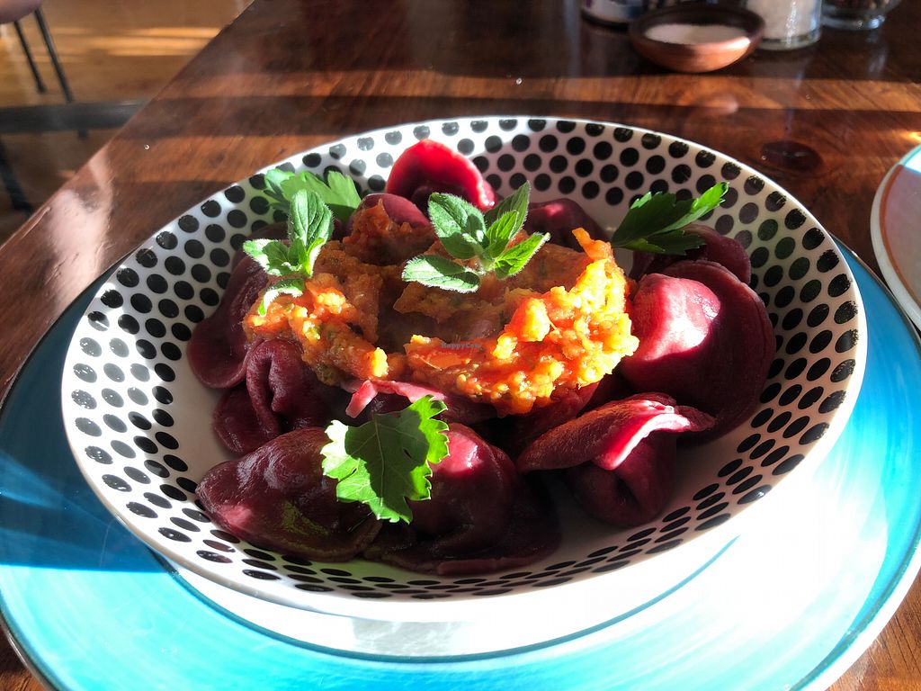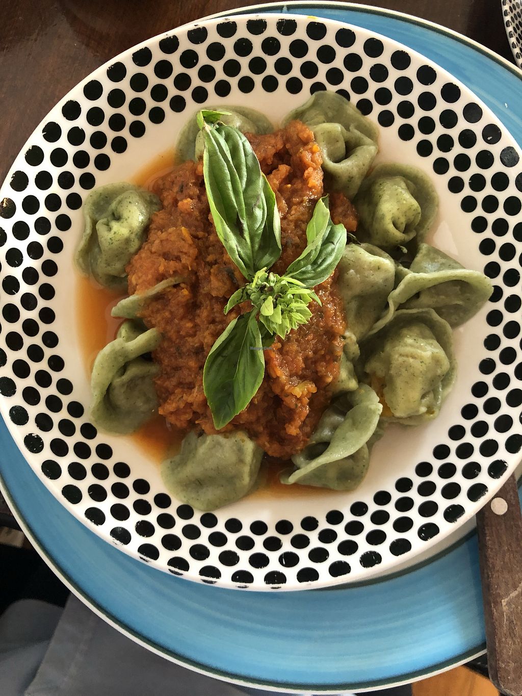 SO GOOD!!! chill café kinda vibe. friendly bilingual staff. separate VEGAN MENU upon request. i chose the ravioli (i think they were homemade) and NO REGRETS💜 it was amazing. their pesto was also so fresh! and i had a chocolate zucchini cake dessert that was so yummy too! go here!