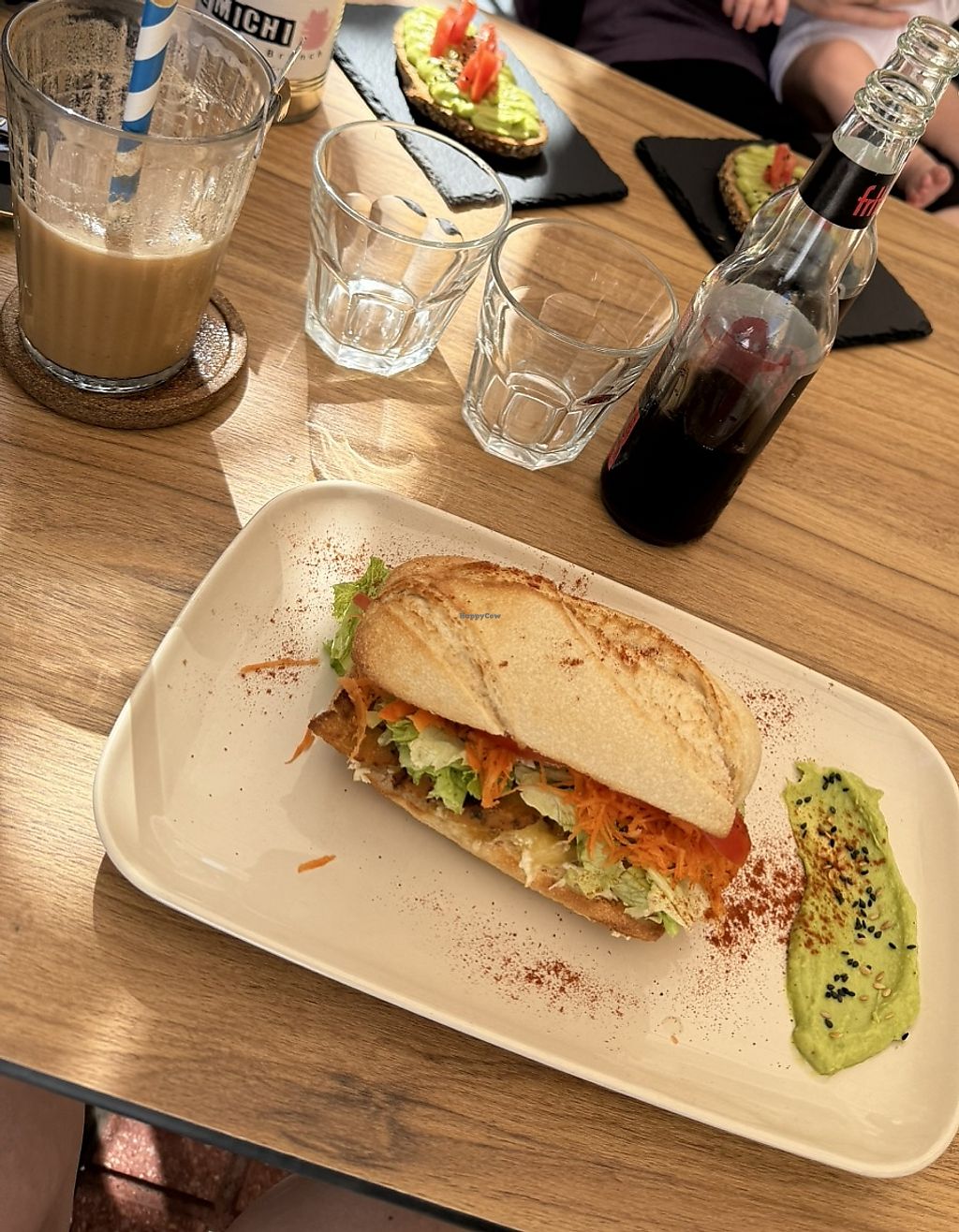 Vegan chicken sandwich and avocado toasts