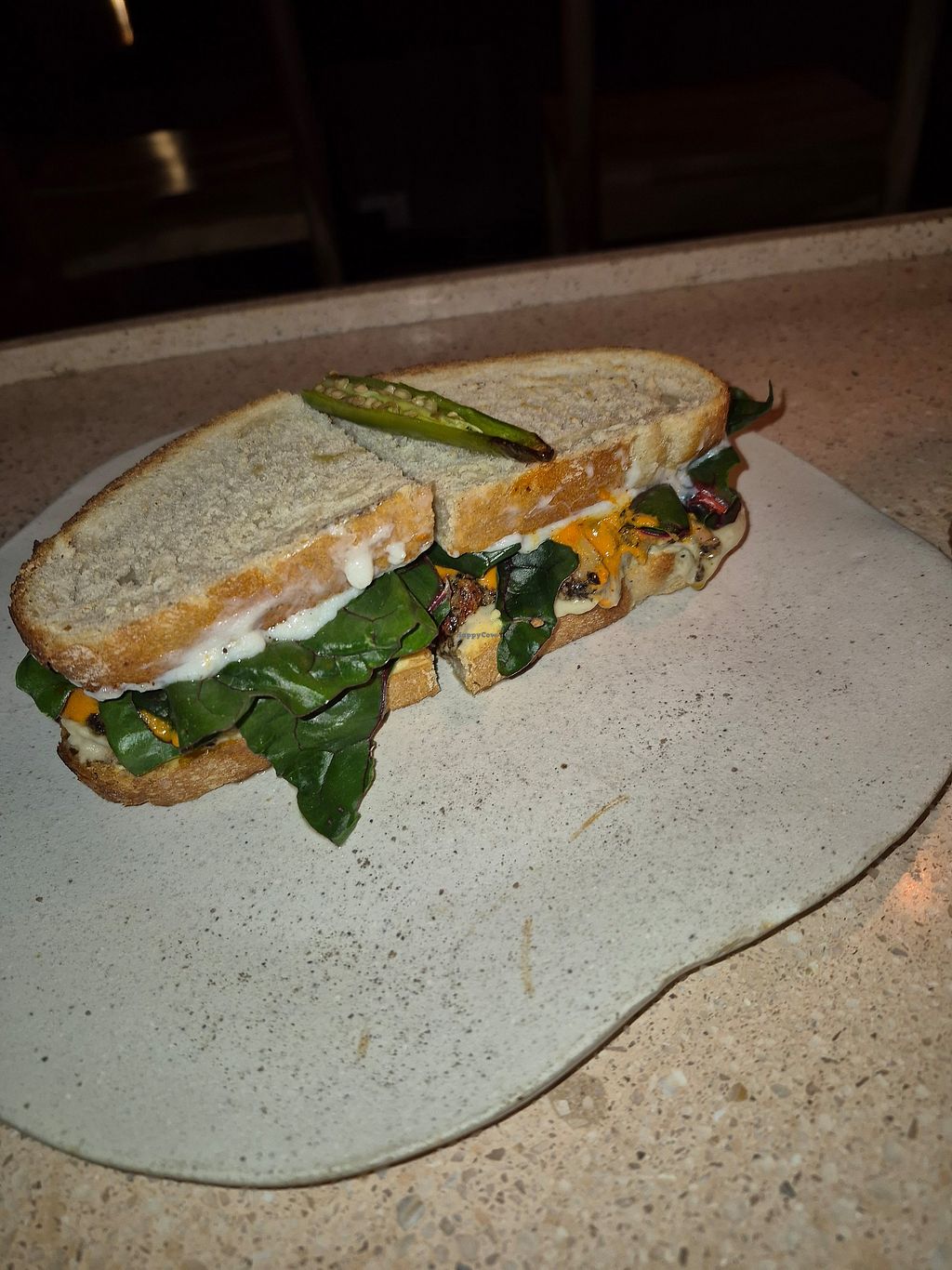 Read moreThe menu items I would have been most interested in were not available, including the ravioli, watermelon tartare, and cheese plate. I ended up getting the mushroom sandwich and the brioche based dessert and while neither were remotely bad, I would recommend not getting this pairing. I imagined that their baker might have a brioche that was a bit more like a fluffy non-vegan item but this one was fairly dense and bun-like so it’s like having two sandwiches for dinner.