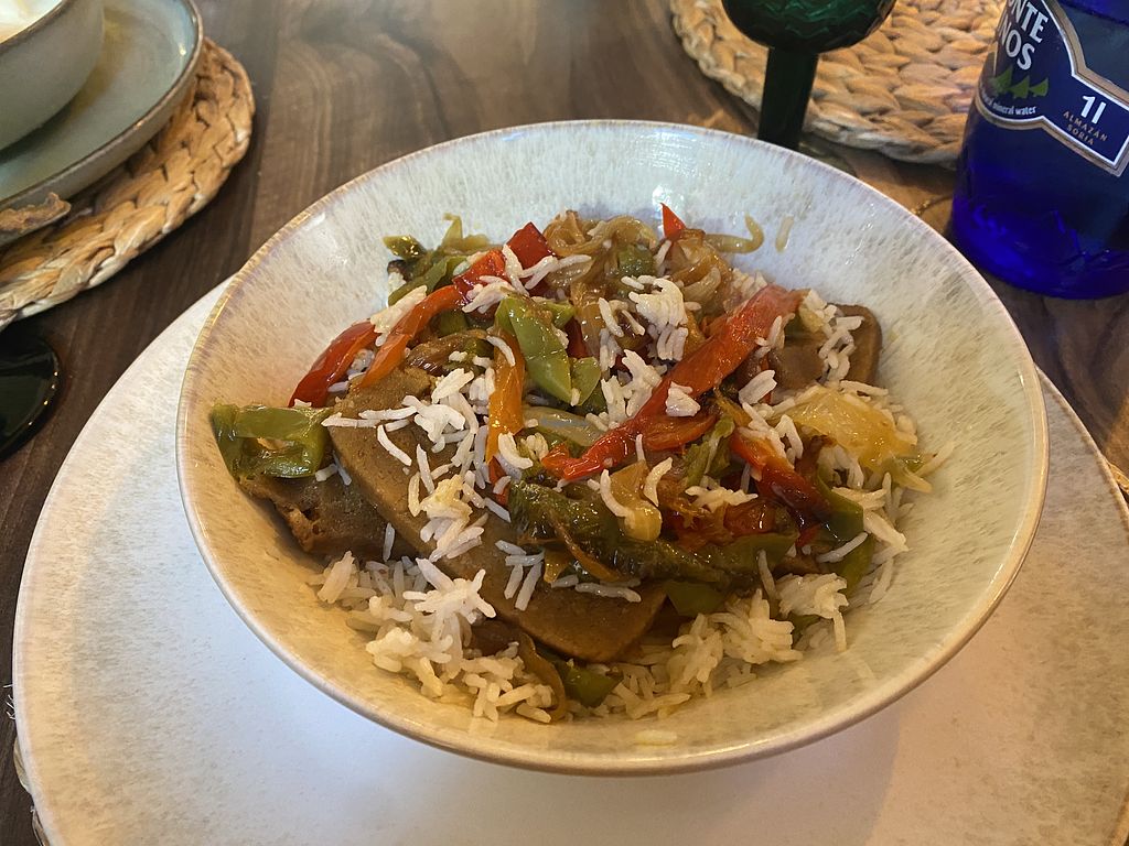 Lacto Ovo Non-veg Serves meat, vegan options available. Restaurante encantador que ofrece algún entrante vegano y dos platos principales veganos, Paté de setas, hamburguesa vegana y seitán Open Mon-Sun 11:30am-10:00pm. More