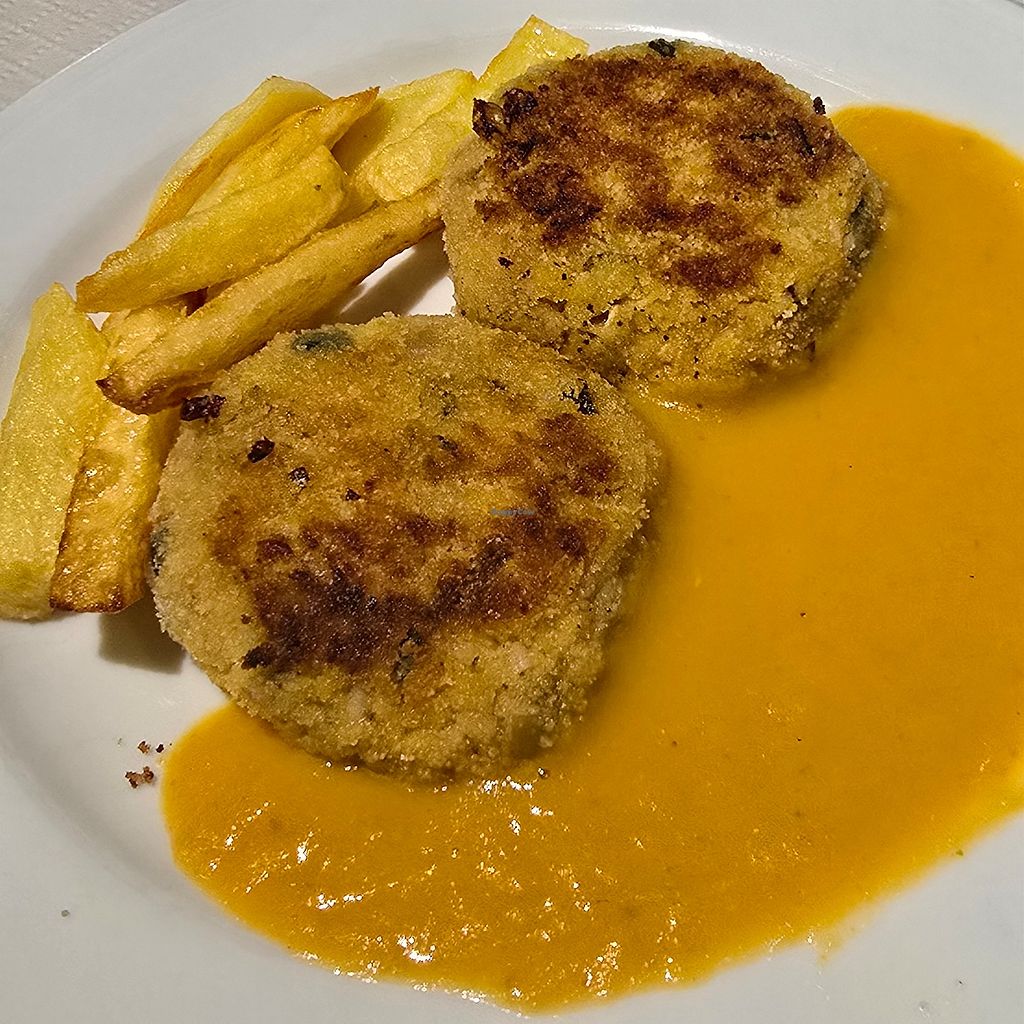 Se agradece un montón que haya una taberna vegetariana con muchas opciones veganas en Gasteiz. La comida estaba muy rica, era buena cantidad, buen precio, un txakoli super rico y las croquetas de setas casi me hacen llorar! El personal fue muy amable, la atención rápida, buena música..