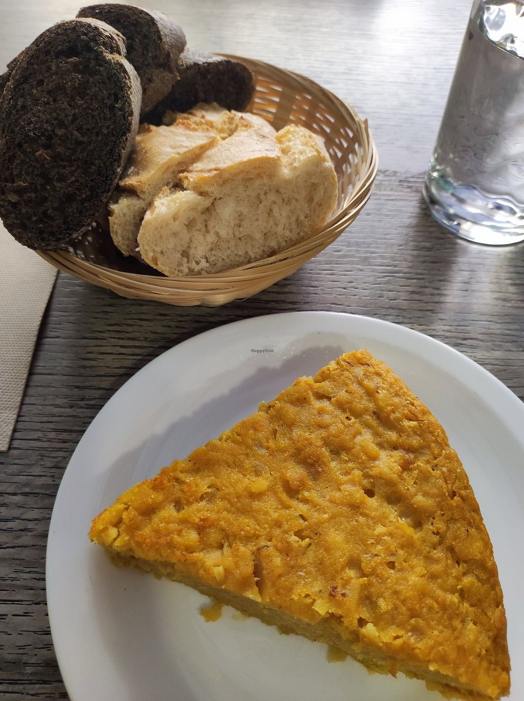 Pincho de tortilla (4.50€) y cestita de pan (1.50€)