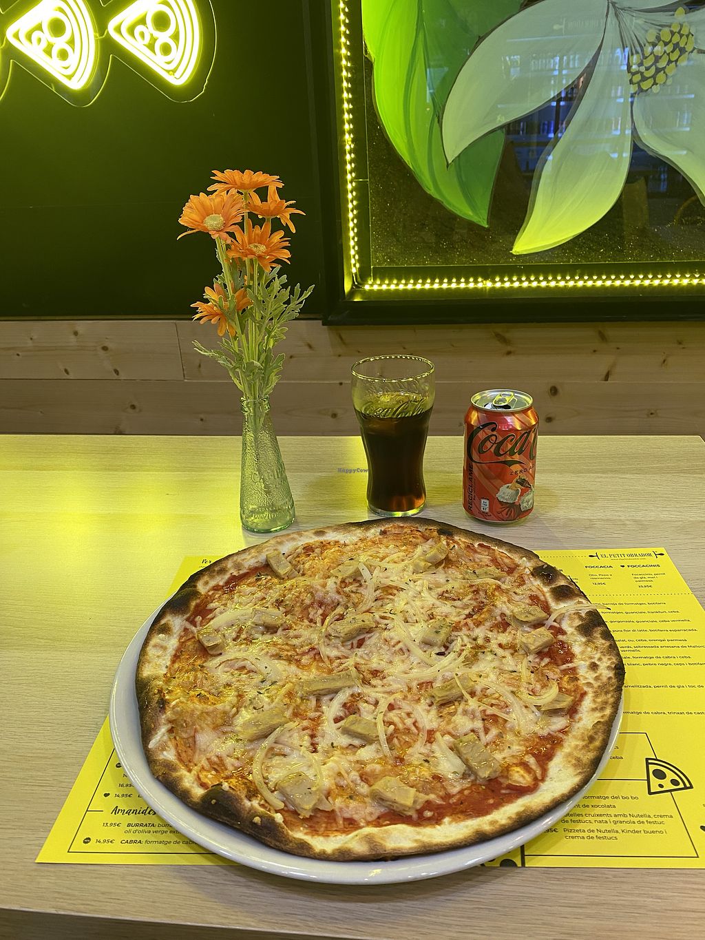Las pizzas veganas que tienen son muy buenas, la masa es muy fina que a mi me encanta y muy buena atención al cliente, son muy simpáticos y te suelen invitar a un chupito de lemonchello despues de comer.