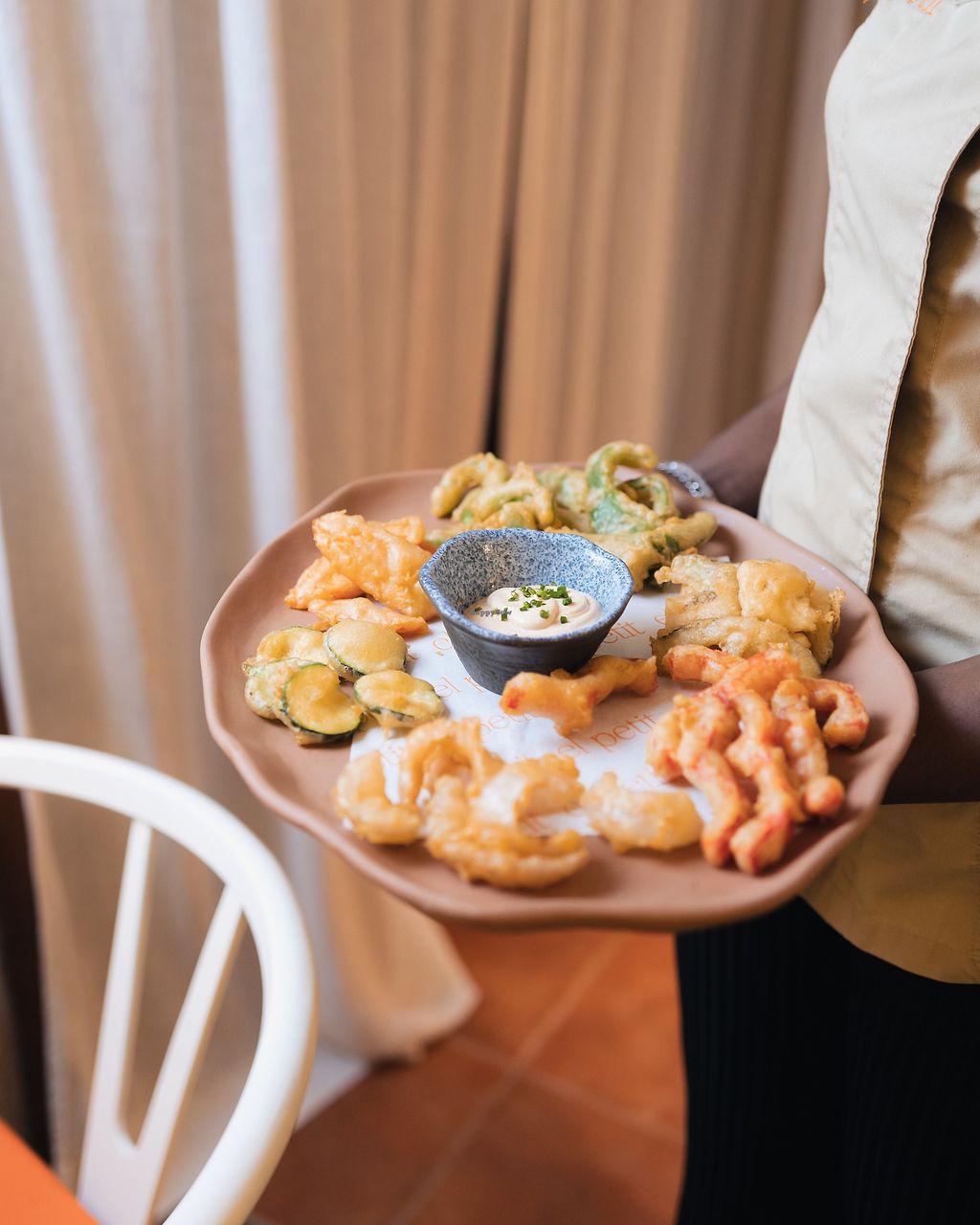 Vegetables in tempura with paprika "allioli" (garlic sauce)