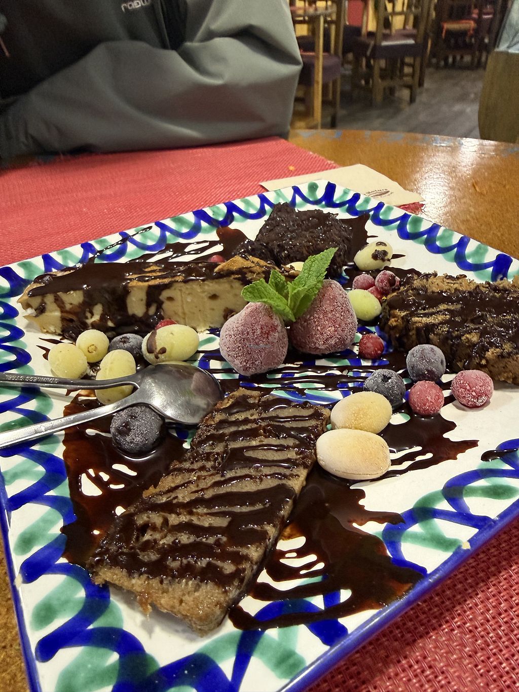 Their chili is an inspiration. We ordered the variety sampling dish (including desserts) for two, which was a delightful experience. Fancier restaurant ambience exists elsewhere, but the culinary experience here exceeded other vegan spots in Granada.
