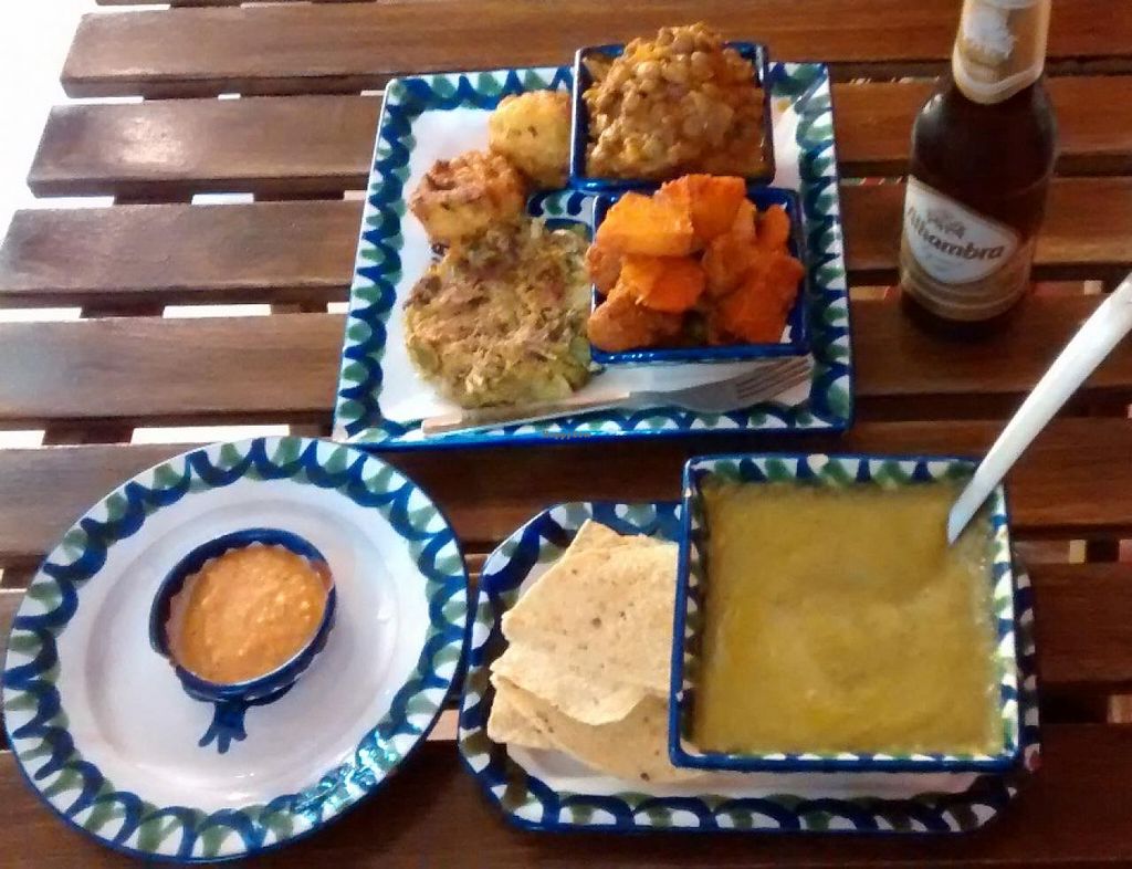 Hot soup + 4 tapas + drink + dessert lunch menu