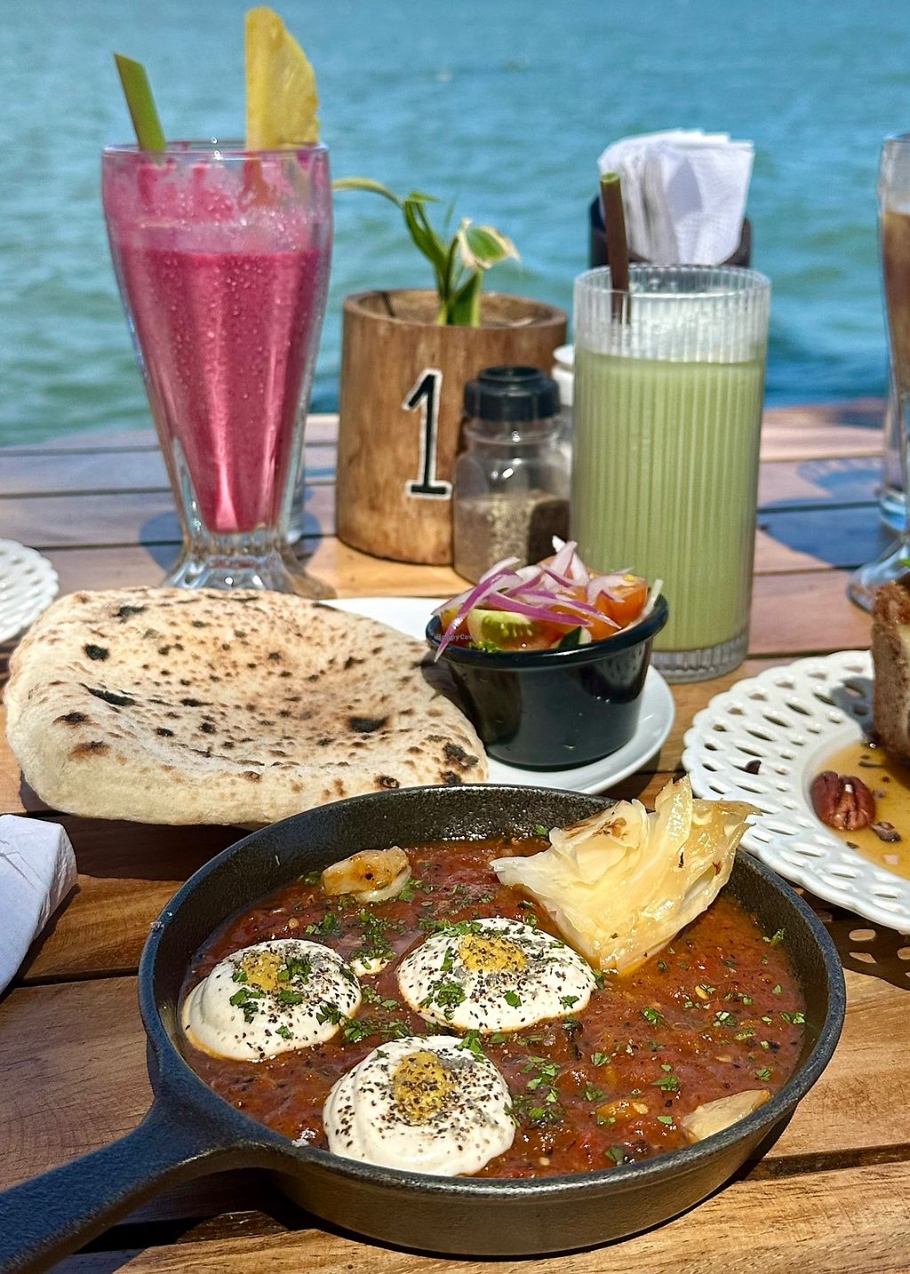 Vegan Shakshouka with Salad and Bagel and Ice Chocolate!