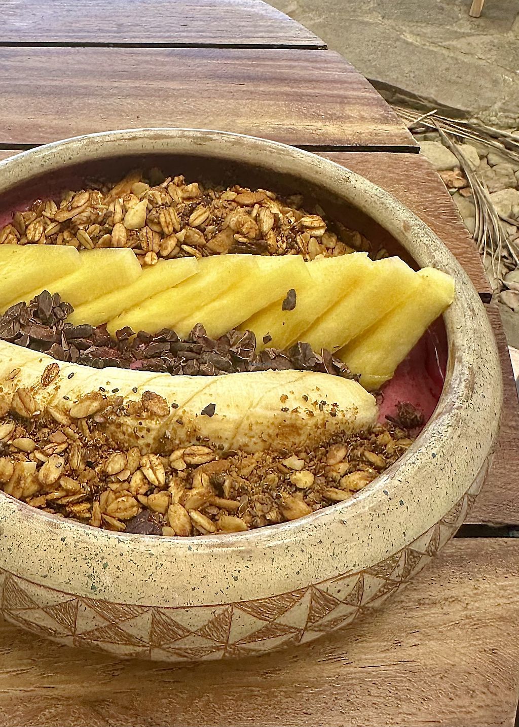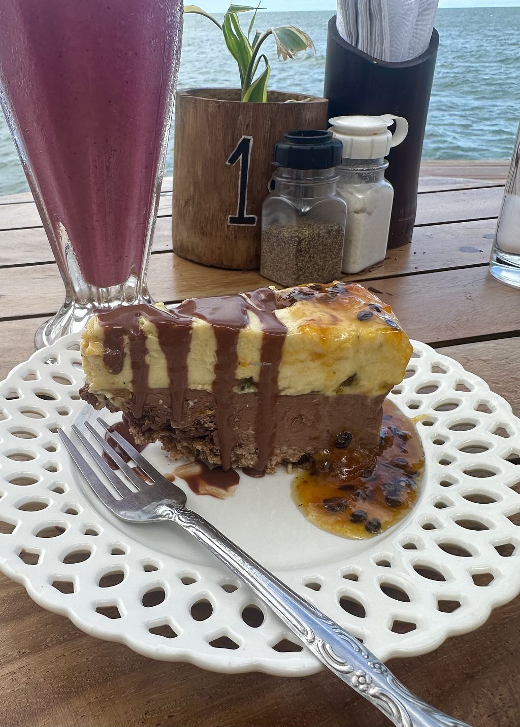 The Ometepe rainbow.. a passion pineapple smoothie with chocolate of c…