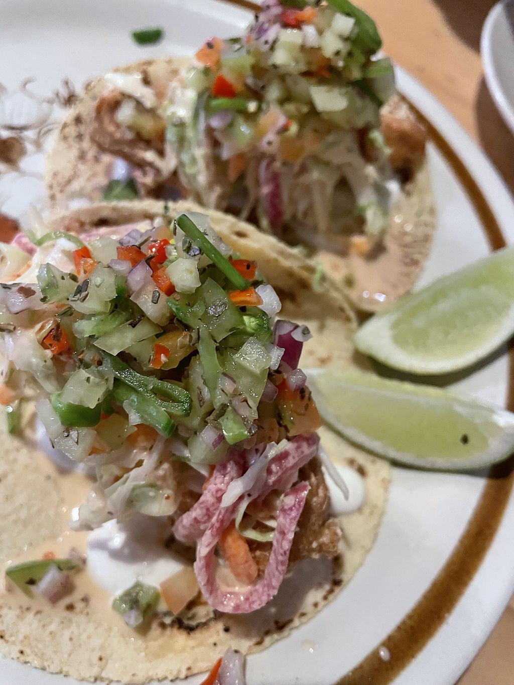 Giving 5 stars because it’s fully vegan but found the food a little bit bland except for the pescado tacos which were delicious and spicy