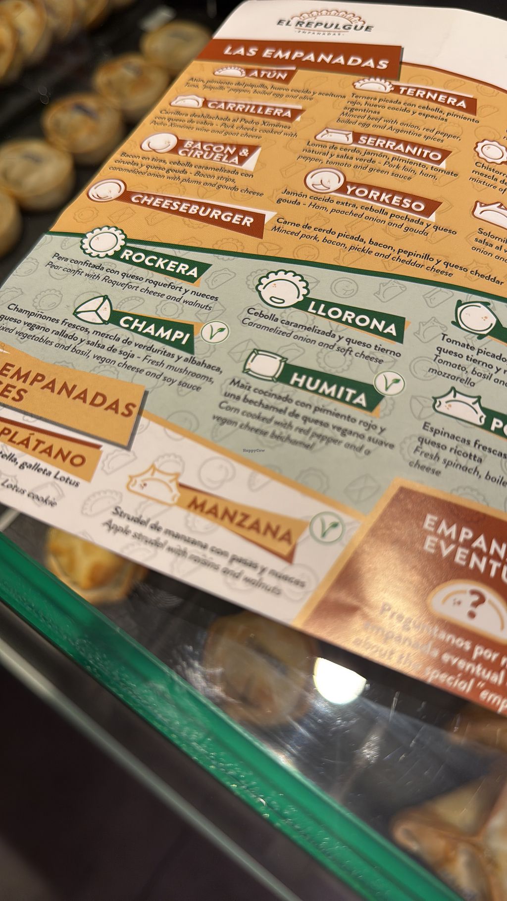 they have 2 savory and 1 sweet vegan empanada. tried the 2 savories and was positively surprised. awesome for a little snack