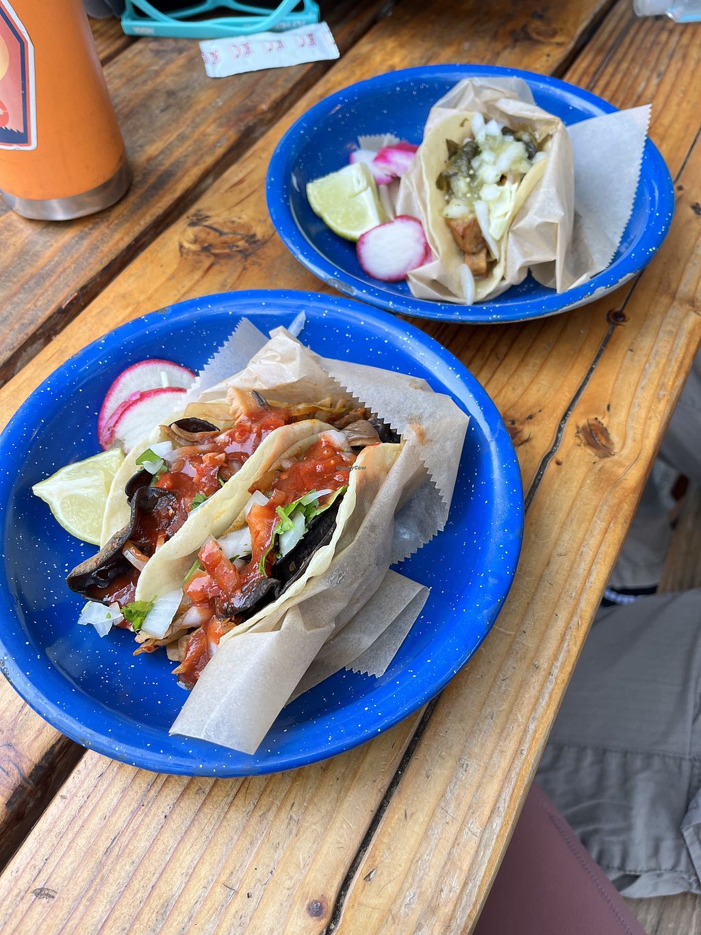 We ordered the mushroom taco and potato/poblano. Mushrooms were a little chewy for me. The potato and poblano were great. With the filling, sauces, and onion, the flavors all worked great together. We picked up on beautiful Thursday night and they were packed. Our order was ready within 5 mins.