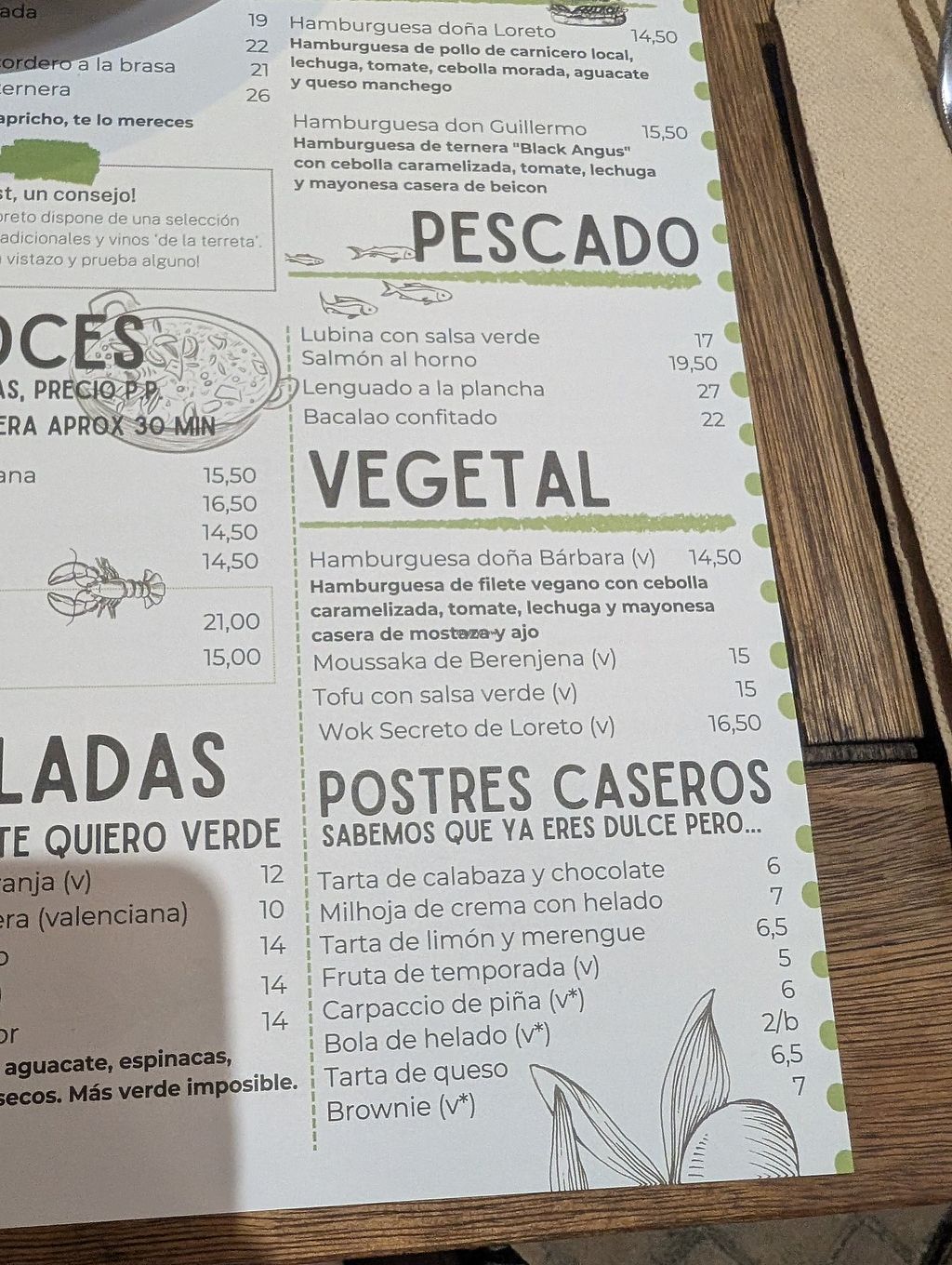 Read moreThis is what you find at El Secreto de Loreto: a CHOICE of a few tapas/starters and salad (6+3), mains with tofu or Heura (4) and desserts (4) that are vegan. A few extras dishes can be made as vegan upon request.