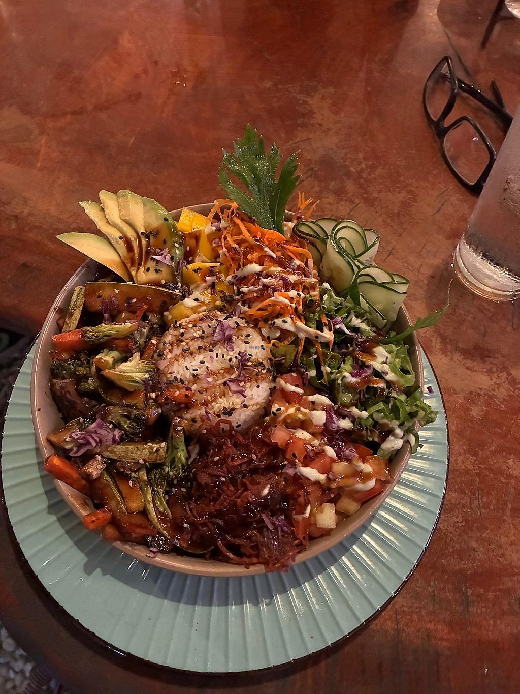 The Buddha bowl was so tasty. Lots of fresh veggies and a view - Edit