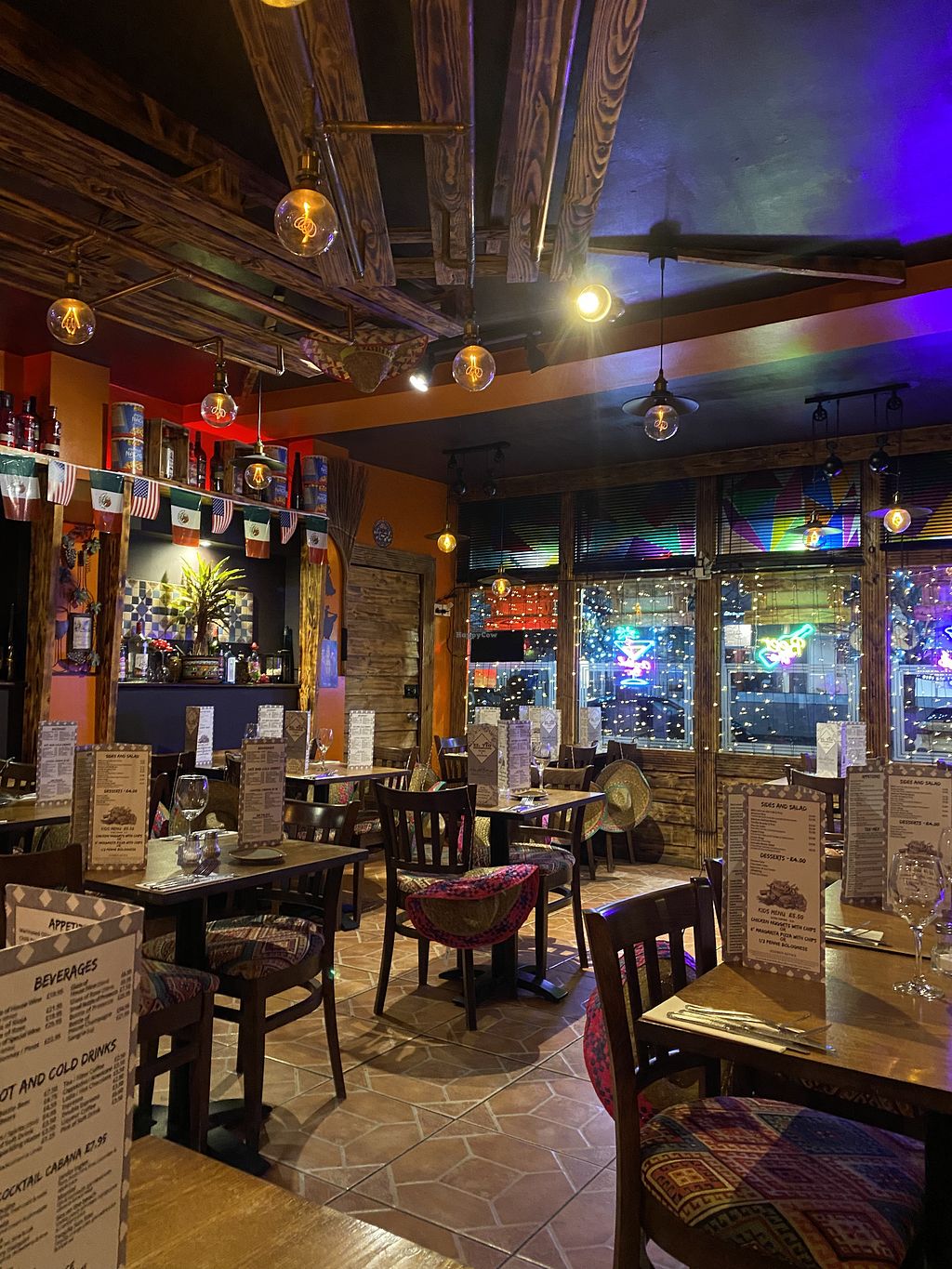Serves meat, vegan options available. Latin American restaurant offering veganizable dishes that include enchiladas, fajitas and vegan chicken dishes with Mexican rice, chips or potato wedges. Also has vegan ice cream for dessert. Open Mon-Sat 10:00-21:00.