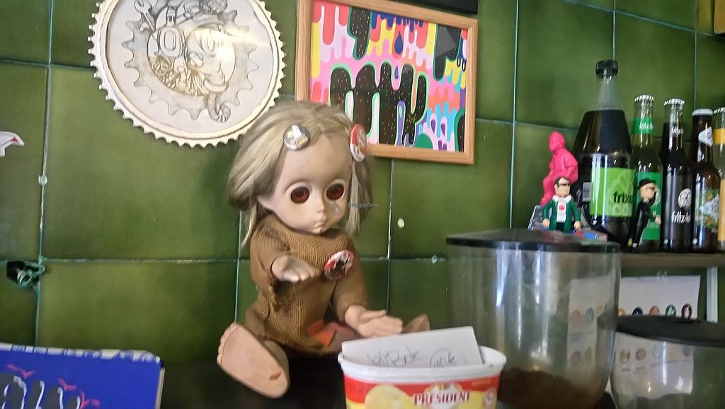 Offers international vegetarian cuisine with vegan choices. Also has expositions (photographic, graffiti, illustration and others), marginal music, books. Bike friendly, bike polo. Reported closed January 2022.