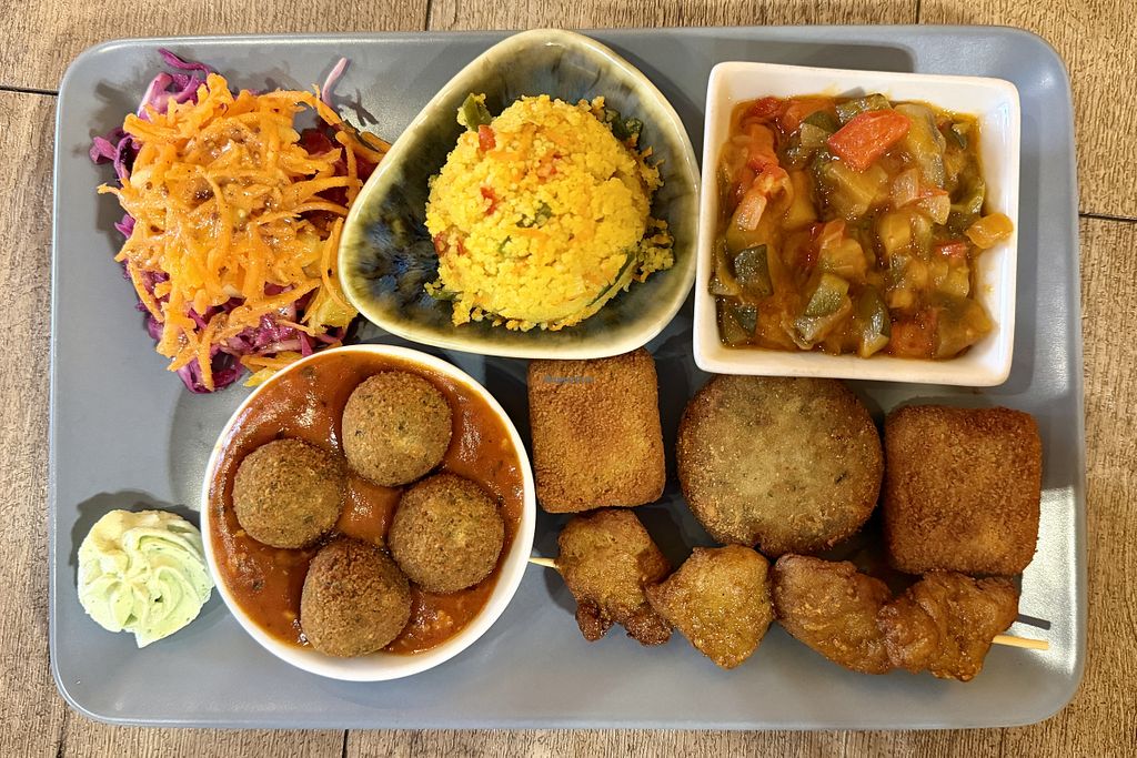 Vegan-friendly restaurant that serves up vibrant flavors with zero fuss. The mixed vegan plate was a feast. Was nice with real vegetables instead of processed food. Paired with a chilled glass of fruity sangria, it was the perfect laid-back evening meal. Service was relatively quick, friendly, and effortlessly welcoming.