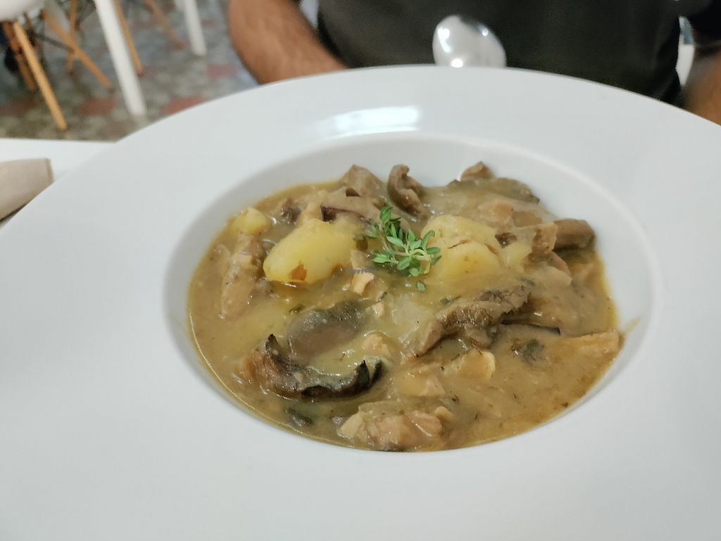 Mushroom, potato, and textured soy stew