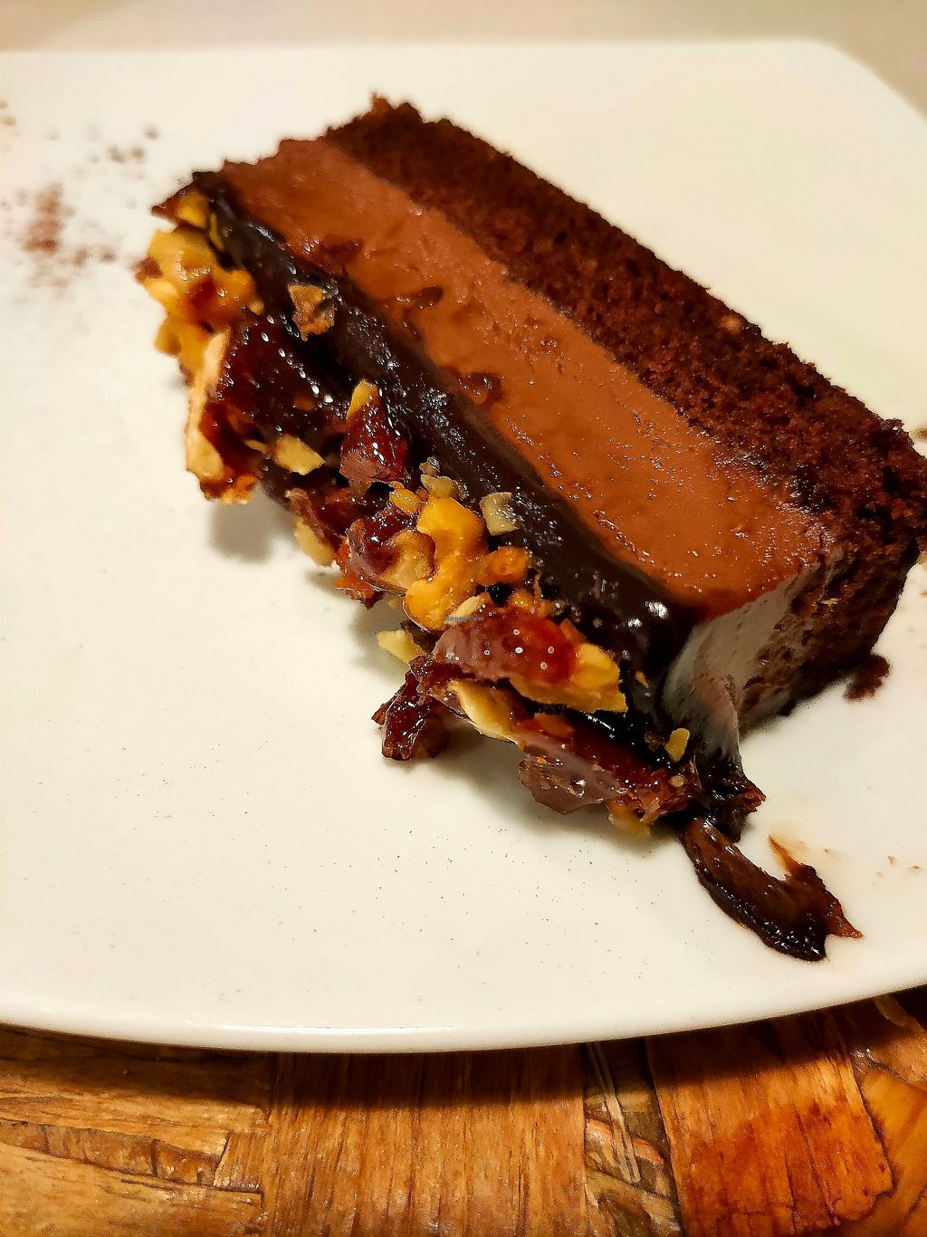 Chocolate cake and caramelized hazelnuts