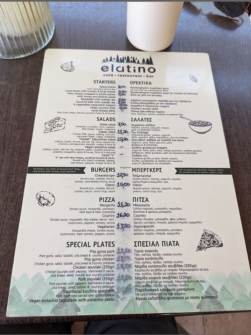 Serves meat, vegan options available. Greek restaurant offering a few labelled vegan items such as vegetable croquettes, pistachio salad, pizza without cheese, pistachio tagliatelle, baked bread and more. NOTE: Reported December 2024 to have limited vegan options – please send updates to HappyCow. Open Mon-Sun 8:00am-10:00pm.