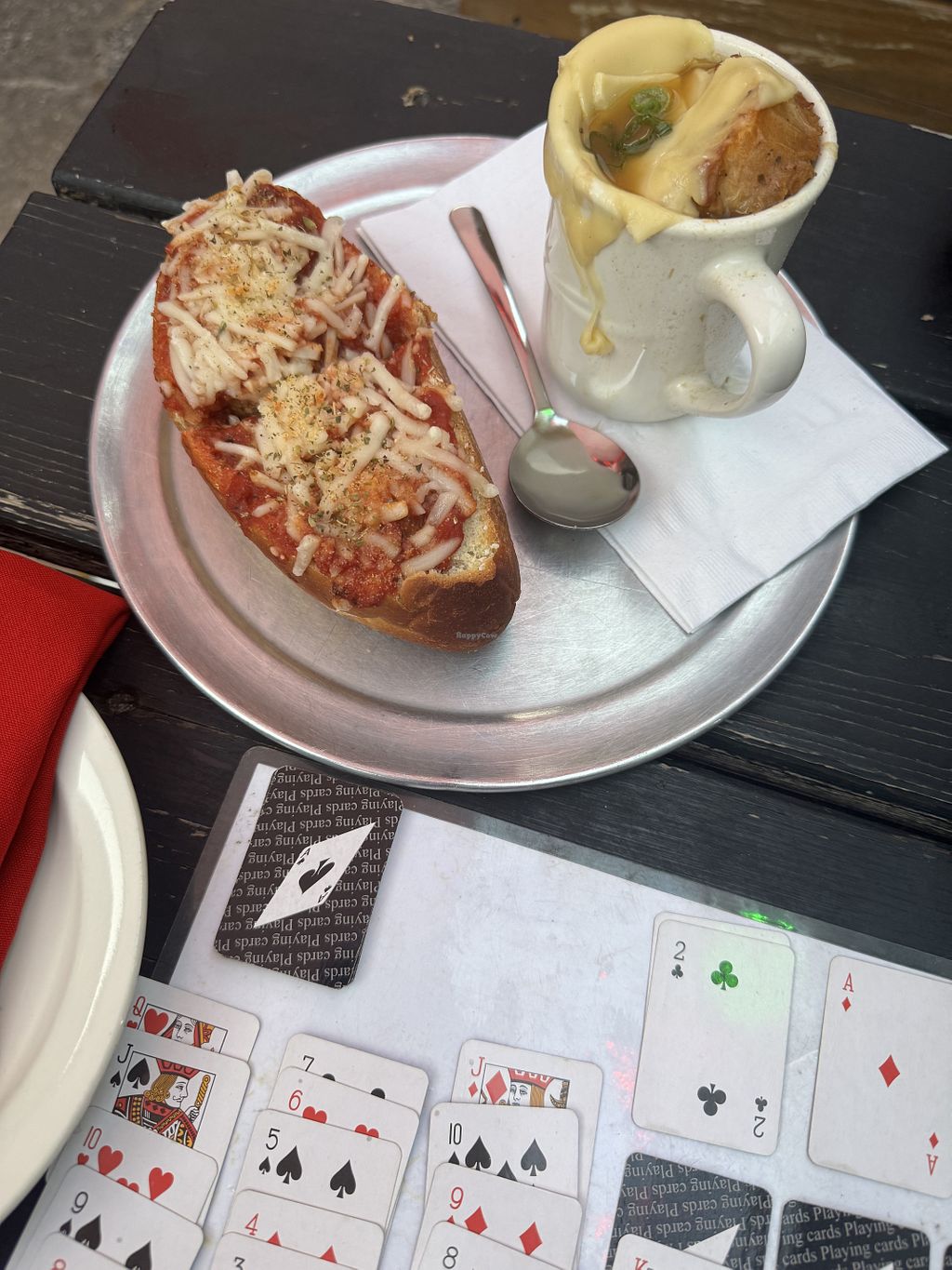 Meatlessball sub with vegan French onion (messy but tasty)