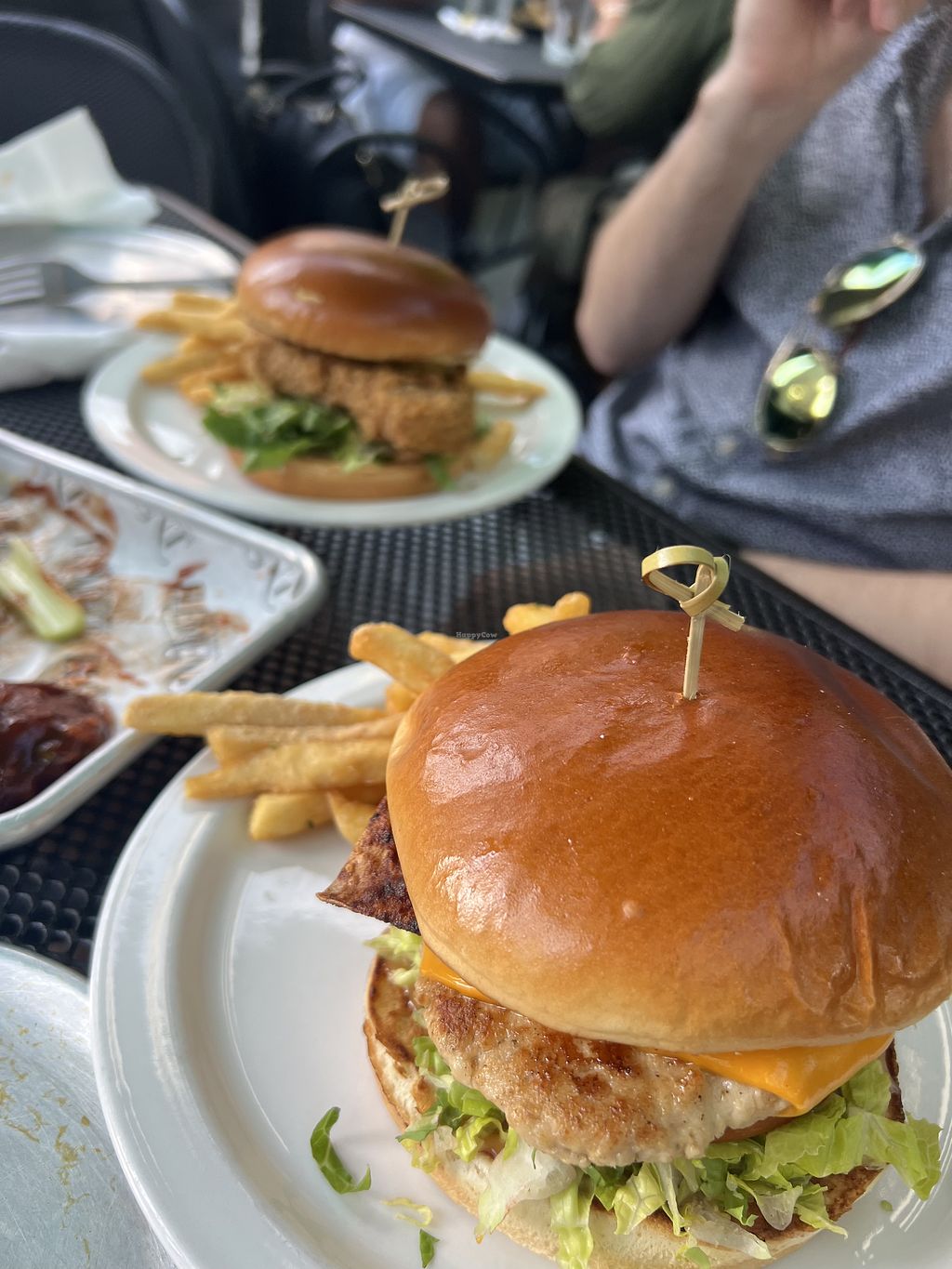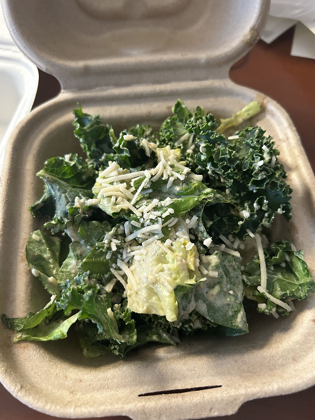 Crispy Chick'n Sandwich and a side of Kale Caesar salad.